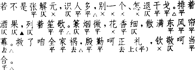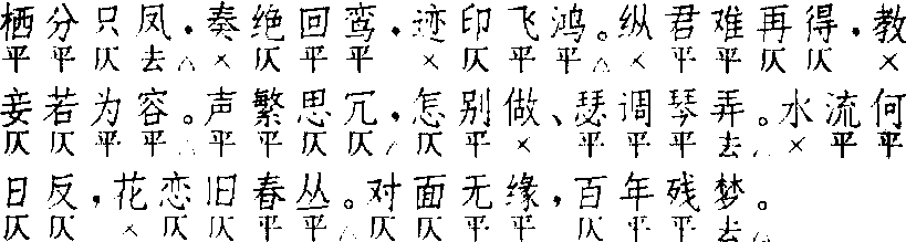 释义 | 五供养 五供养王实甫 《西厢记》 ![]() 全曲十一句:3,3△,7△。3▲,3△。3,3,4△。3△,4,4△。第八句皆作六字句或上三下四式七字句。第九句多作五字句或六字折腰句。剧套首牌。未见他用。与南曲不同。〔五供养〕用者甚少,只见于王实甫《西厢记》、《丽春堂》,李直夫《虎头牌》,贾仲明《萧淑兰》四剧,皆用作首牌。 ☚ 新水令 驻马听 ☛ 五供养 五供养梅鼎祚 《玉合记》 ![]() 全曲十一句:4△,4,4△。5,5△。4△,7△。5,5△。4,4△。第二、三两句,可合为上三下四式七字句。第八、九两句,可作五字三字两句,平仄为×仄平平仄,仄平平;末二句亦可合为平起平收七字诗句。如《长生殿·重圆》末三句:“添注个鸳鸯牒,紫霄边,千秋万古证奇缘。”即此种作法。〔五供养〕联套时多用二支,亦有用一支者。叠用较少。与北曲不同。南戏《张协状元》第十出三支,尚属早期词式。经过《杀狗记·孙荣自叹》、《白兔记·送子》、《荆钗记·投江》、《拜月亭·抱恙离鸾》,直到《琵琶记·南浦嘱别》方始定型。《琵琶记·杏园春宴》二支,陆贻典抄《元本琵琶记》作一支,词式大异。《蕉帕记·闹婚》题〔五供养引〕,实为一支单用,不必标“引”也。以〔五供养〕为主的集曲有〔供养海棠〕、〔五玉枝〕、〔供养江水〕、〔五枝供海棠〕、〔五月红楼送玉人〕,见《南词简谱》。 ☚ 江儿水 玉交枝 ☛ 古代名物 > 宗教類(上) > 佛家法物部 > 法器供具 > 五供養 五供養 wǔgòngyǎng 佛教指塗香、供花、燒香、飯食、燈明等五種供養物。明·文震亨《長物志》卷七:“做玉降魔杵,玉五供養爲總記。”參閱《蘇悉地羯囉經》卷上。 |