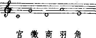由五个音按五度关系排列起来所构成的调式。这五个音称宫、徵、商、羽、角。