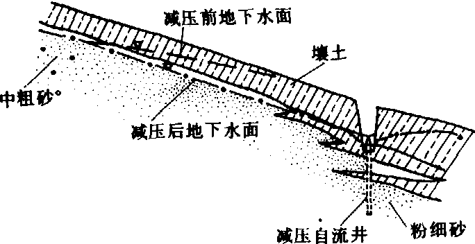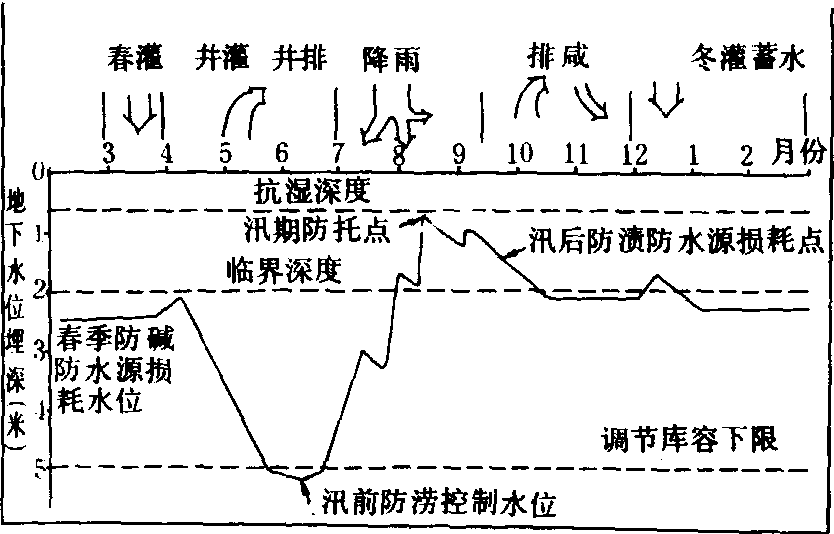 释义 | 井灌井排well irrigation and drainage利用竖井抽取地下水进行灌溉和排降地下水或排泄地表水的农田排灌工程措施,又称竖井排灌。主要用于灌溉和防治渍涝与土壤盐碱化,是综合防治旱、涝、渍、盐的一种有效措施,对改造中低产田,提高农业产量有重要作用。 图1 深沟浅井自流减压排咸示意图 回灌井(吸水井) 当地下水位较低,而地表层有粘性土较厚的隔水层,不利于地表积水和气包带中多余水分自然下渗,而地下水位较低,且有一定调蓄容量,可将净化过滤、符合回灌要求的地表水或暗管汇集的壤中水,通过竖井注入(回灌)地下;或当地表远离排水承泄区,而潜水底部的隔水层以下存在有良好的砂砾层或溶洞,且水位低于潜水位时,可打井穿透隔水层,把地表水和潜水通过水井排入地下,用以排除地表涝渍水和降低浅层地下水位。 规划设计 包括井型选择、井的结构设计、井的平面与立面布局和井泵动力合理配套安装等。规划设计的总原则是,在区域或流域水资源总体规划控制下,依据当地水文地质条件、生产发展水平与要求,因时、因地制宜进行;以开发利用与旱、涝、渍、盐关系密切,且较易得到补给的浅层地下水为主,不用或少用中、深层地下水;尽可能与地表水联合调控和开发利用,尽量做到灌排并举,采补结合、利用与保护水资源并重。井点一般选在井深范围内有透水性良好的砂砾含水层地带,或有结构的粘土(如块状、核状和粒状粘土等)地区,水通过结构间隙运动,可使抽水达到良好效果,为治理因邻近地区的地下水侧向补给,造成的局部地带沼泽化和盐碱化时,井点布置在地区来水方向的边界上,以断绝其补给来源。立面布置的情况是如为治理因降雨或渠灌入渗抬高潜水位而造成土壤过湿的地方,在浅水含水层中打浅井进行井灌井排;当潜水受承压水的顶托补给时,自承压含水层打井进行井灌井排,以降低承压含水层的压力水位;如作为回灌吸水井,打井穿透隔水层,使地表水和潜水能通过水井排入地下。井的间距和深度,则依据井的出水量、抽水持续时间以及作物灌溉定额等多种因素确定,使井灌井排既能做到对农作物适时适量合理灌溉,又能在规定时间内把地下水位降到要求的深度。在缺乏良好含水层的地方,进行井灌井排,尚须考虑采用适宜的井型结构,如大骨料井、筒井、管井、辐射井、虹吸管集水井组等型式,以增加水井出水量和提高抽水效率。在井的结构设计及井泵配套安装方面,应在满足强度要求前提下,选用耐腐蚀材质井管,以减小入井阻力,提高出水效率,降低能耗,延长井的使用年限。 有条件时,井灌井排的规划设计最好与渠灌沟排相结合。井渠结合可取得井渠互补之利,以渠养井,以井补渠,井灌降低的地下水位可因渠灌而得到补给,渠灌抬高的地下水位,又因井灌而下降。沟排井灌结合,是指以浅沟排涝防渍,以骨干深沟与井排结合控制地下水位,这样可提高除涝渍和排降地下水位的效果,避免单纯挖沟排水占地多、土方量大,单纯井排,井点过密,加大投资和增加抽水费用等缺点。 运行管理调度 包括两方面,一是对井泵、机电、管渠的维护与管理,以提高设备完好率,做到适时排灌,降低运行成本,提高井灌井排效益,延长井、泵、机的使用年限;二是通过井灌井排,与沟、渠、闸、站、坑、塘等配合,实现对当地地表、地下水资源的联合调控和充分合理利用,与此同时调控水盐运动,使土壤及浅层地下水逐渐脱盐淡化,达到综合治理旱、涝、渍、盐的目的。实行水盐运动调控的运行管理的关键是以调节地下水位临界动态曲线为中心。地处黄淮海平原的河北省吴桥县杨家寺盐碱地综合治理典型区的综合工程管理,其运行管理的关键是在时空上掌握几个关节点和临界水位。管理运用模式见图2。汛期防托点是将地下水位控制在0.5~0.7米以下;汛后防渍、防水源消耗点水位为1.5~2米;春季防盐、防水源损耗点水位为2.5~3米;汛期防涝、防托和滞蓄当地降水的水位则降到5米左右。这样周而复始,交替利用,春季抽水抗旱腾库防夏涝,汛期排涝与蓄滞结合防托、防盐、防春旱,作到寓灌于排、寓排于灌、寓排灌于蓄,实现“三水”(雨水、地表水、地下水)转化,为农田生态创造良好的水分环境。不同地区各个关节点的水位指标,依据当地自然地理和社会经济技术条件合理选定。图2中调节库容下限水位定为5米左右,是属于年调节型以离心泵对口抽为主的井灌井排区。若以井泵(长轴泵或潜水泵)抽水,则可考虑多年调节型,在枯水年可超量(超过地下水多年平均的补给量)开采,调节库容下限水位可定在5~10米或更深一些,以增大地下调节库容;待丰水年通过自然与人工相结合的回渗、回灌措施得到回补。 图2 综合工程管理运用模式图 井灌井排irrigation and drainage bypumped well从机井抽取地下水用于灌溉,既可满足作物需水,又能淋洗土壤盐分和降低地下水位,起了竖井排水的作用,故称井灌井排。机井抽水时,井的周围地下水位下降,形成一个以井为中心的降落漏斗,特别是在群井抽水情况下,降低地下水的效果更为显著。随着地下水位降低,地面蒸发减少,可防止或减缓地表积盐的强度。机井长期抽水,形成地下水位降落漏斗,从而增大了土壤的“库容”,增加降水入渗量,减少地表径流量,防止因田面积水而酿成的涝渍灾害,同时由于增大了土壤的储水量而提高了抗旱能力。鉴于机