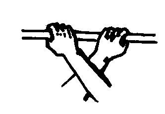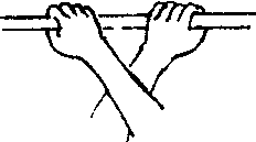 正握或反握的变化握法之一。两臂交叉握器械。交叉握时必须指明哪一臂在上。如:右臂在上正交叉握。交叉握也可以做成反正握,记写时也要指明哪一臂是反握。如,左手在下反握的交叉握,此时正握可省略。