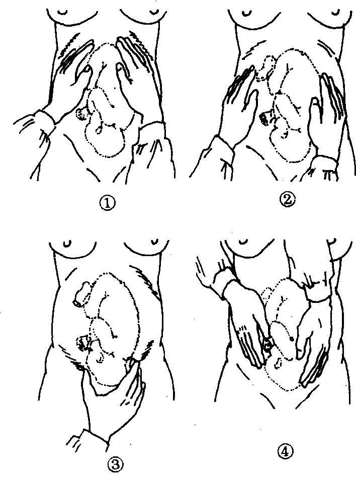 释义 | 产前初诊检查的项目 产前初诊检查的项目包括:1.病史。包括姓名、年龄、结婚年龄、胎次(妊娠几次,也称孕次)、产次(指孕28周以上的分娩次数)、职业、月经情况:月经持续天数/月经间隔几天数、末次月经(LMP),预产期(EDC)。预产期的推算:人类妊娠共经过280天即40周。按末次月经来潮的第一天为末次月经,月份减3或加9,日数加7来推算预产期。如末次月经为1993年6月10日,预产期将是1994年3月17日。如月经为23天一周期则预产期也将提前一周。如月经为40天一周期,则预产期也将错后10天。此外,即使月经按期来潮,分娩日期也可能会比预产期提前三周或错后2周,在这期限内都视为正常现象。若末次月经记不清或因哺乳或服避孕药月经未按期来潮,可根据早孕反应时间、早孕检查子宫大小(最可靠的指标)、胎动时间以及孕中期以后的子宫底高度(不如早孕子宫大小可靠)来推测预产期。用B超测定孕14周前的头臀长或孕14周—30周胎头双顶径可准确推算预产期。本次妊娠经过(包括早孕反应,妊期有无病毒感染或服药史,胎动开始时间,有否阴道出血,下肢浮肿等),既往孕产史(若是经产妇,应了解有无难产史、死胎死产史、分娩方式及有无产后出血史,若前次分娩为剖宫产,应问明手术指征、日期、新生儿情况),既往史(着重了解有无心脏病、肝肾疾病、高血压、糖尿病、遗传性疾病、有无手术等病史),家族史(有无糖尿病、双胎、遗传性疾病),以及丈夫健康情况。2.全身检查。全身发育营养情况(身高是否矮小,140厘米以下常伴有骨盆狭窄),量血压(正常应130/90毫米汞柱以下,如与基础血压相比不增高30/15毫米汞柱),听心脏及肺呼吸音,有无水肿(孕妇膝以下水肿经休息后消退为正常现象),测量体重(孕妇妊晚期体重增加每周不应超过500克)。3.产科检查:(1)腹部检查注意腹形,应是纵轴长而不是腹部两侧向外膨出状。其次测量子宫高度(用皮尺测耻骨联合上缘至宫底的弧形长度),正常子宫底高度应在妊娠图宫高曲缘的第10百分位数以上到第90百分位数以下之间,如宫高与孕周不符合应再次核对预产期。如核对无误,子宫底高度仍大于孕周应注意是否为双胎、羊水过多或胎儿过大。如子宫底高度低于孕周应注意是否胎儿发育迟缓。(2)检查胎方位。用四步触诊法(见图6.4-2)。第一步双手放于子宫底部,判断宫底部的胎儿部分为头还是为臀,头则硬且圆有浮球感,臀则软且宽且形状不如头规则。第二步两手分别置于腹部左右侧,一手固定,一手轻轻深按检查,两手交替,仔细分辨胎背及胎儿四肢的位置。胎背平坦且稍硬,胎儿肢体部分是可变形的高底不平的小部分,第三步检查者右手置于耻骨联合上方,拇指与其余四指分开,握住胎先露部,进一步查清是胎头还是胎臀,左右推动以确定胎先露是否已近入骨盆入口。如先露仍左右浮动,表示尚未入盆。如胎先露未入盆则不必做第四步。第四步检查者面向孕妇足端,两手分别置于胎先露两侧,向骨盆入口方向深压,再次核对先露部的诊断是否正确,并确定先露部入盆的深度。通过四步触诊法,多能判断胎头、胎臀、胎背的位置,如胎头在下面,胎背在母体左侧则胎头枕骨也在骨盆入口的左前方,胎位应是左枕前(LOA)位。(3)听胎心。胎心在胎儿背部上方的孕妇腹壁听得最清楚(见图6.4-3)。(4)骨盆测量。骨盆外测量不够准确,大多医院已废除这项检查。内测量需有经验的产科医生检查才能准确。(5)化验检查。 图6.4-2 胎位检查的四步触诊法 ☚ 产前检查的目的 产前复诊检查 ☛ |
