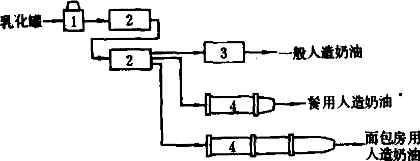 释义 | 人造奶油制作margarine making将油相物(油脂及油溶性添加物)和水相物(水及水溶性添加物)按一定比例进行调配、混合、乳化、冷却结晶和塑化等工序,制成具有可塑性的或液态乳化状的油脂食品的过程。 图1 人造奶油各原料的调合及乳化过程 1.发酵乳罐; 2.乳罐; 3.水罐;4.水相调合罐; 5.油脂调合罐;6.油相调合罐; 7.乳化罐; 8.柱塞泵 人造奶油的制作过程包括原料的准备(调合与乳化)、冷却、塑化以及成品的包装和贮存等几个阶段。原料的准备过程如图1。水相物料在水相调合罐中混合,使各成分溶解于水。原料油脂先在油脂调合罐中混合,然后进入油相调合罐,与各种油溶性添加物混合均匀。准备好的油相混合物被送入乳化罐,并随之加入水相混合物,在50~60℃的温度下迅速搅拌,使水相物均匀地分布在油相物中,以形成乳化液。最后,乳化液由柱塞泵送往急冷机,进行冷却和塑化处理。 急冷机(或称A单元),由2~3个冷却圆筒组成(图2)。乳化液在急冷机中的冷却和塑化过程如图3。通过冷却介质(液态氨或氟利昂)的急速冷却作用,乳化液在冷却圆筒的壁上析出网状结构的细小结晶体,随后被转筒上的刮刀刮下。此时乳化液的温度虽已降到油脂的熔点以下(10℃左右),但由于受到强烈的搅拌,还不会很快结晶成固体,而是形成所谓过冷液。随后,过冷液由急冷机(A单元)进入减稠机。减稠机亦称B单元,是一种搅拌捏和装置,由圆筒、固定翅、搅拌翅和搅拌轴组成(图4)。在固定翅和搅拌翅的剧烈振动下,过冷液的网状结构被打碎,于是产生重新结晶,从而使其可塑性得到提高。由此制得的人造奶油要立即进行充填包装,并送往低于其熔点10℃左右的冷库贮存2~5日,以使结晶体逐渐稳定,达到熟成状态。这种人造奶油一般适用于食品工业。而直接餐用的人造奶油,则不宜经过强烈的搅拌,即从急冷机出来的过冷液无需经过减稠机,就直接进入静止管(图3)。静止管为一细长的圆筒,圆筒内装有1~5块金属孔板或筛网,圆筒外装有夹套,用于调节温度。过冷液在静止管内继续结晶,并通过金属孔板受到适度的捏和作用,以降低其稠度。因而,改变静止管的长度和金属孔板的数目,就可获得不同稠度的人造奶油。在静止管之后,还需要经过充填、成型和包装,最后送往冷库贮存。 图2 急冷机(A单元)结构示意 1.乳化液入口;2.冷却介质入口; 3.乳化液出口;4.冷却介质出口;5.防冻热水;6.外壳;7.隔热层;8.冷却夹套;9.冷却介质通道;10.冷却圆筒;11.刮刀 图3 人造奶油的冷却与塑化过程 1.柱塞泵; 2.急冷机(A单元);3.减稠捏和机(B单元);4.静止管 图4 减稠捏和机(B单元)结构示意 除以上制得的通用可塑性人造奶油以外,还发展了液体乳化状、高亚油酸型、低热量型等多种人造奶油。液体乳化状人造奶油是以液体色拉油为基础,加入少量硬化脂肪(加氢化的菜子油和棉子油)而制成的,它含水分较多,易于流动。高亚油酸型人造奶油是以高亚油酸油脂(如棉子油和向日葵油)为主要原料制成的,其亚油酸含量高达50%~63%,具有降低血清胆固醇、医治心血管疾病的良好作用。低热量型人造奶油含脂肪酸为40%左右,而水分含量达50%以上,是一种防止因脂肪摄取量过多而产生疾病的特殊油脂食品。 |