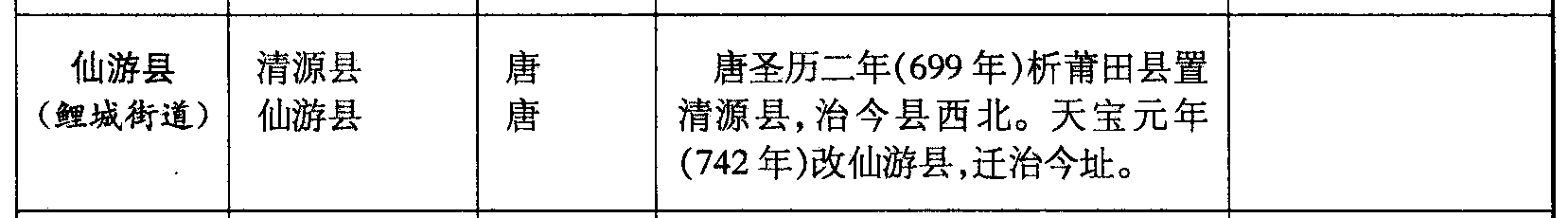 仙游县(鲤城街道)清源县仙游县唐唐唐圣历二年(699年)析莆田县置清源县,治今县西北。天宝元年(742年)改仙游县,迁治今址。