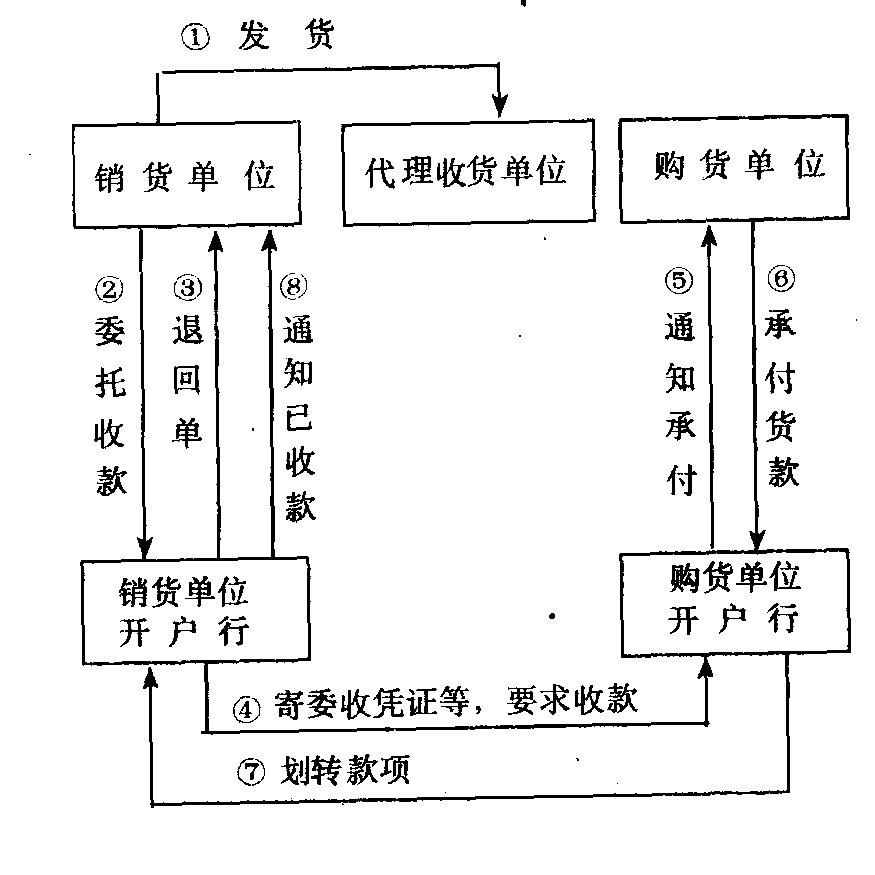 释义 | 代理收货委收 代理收货委收多环节委托收款结算的一种方式。购货单位与代理收货单位不在同一地,销货单位向代理收货单位发货以后,委托其开户行向购货单位委收货款的结算方式。其核算程序图示如下: ☚ 代办发货委收 委托收款结算方式 ☛ |