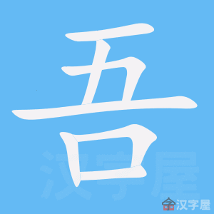 字源解说 “吾”是“唔”和“晤”的本字。五,既是声旁也是形旁,表示多。吾,金文 = (五,大量交会)+ (口,说话),表示长久交谈。造字本义:正式会面并长谈。有的金文 把强调“交会”的 简化成 ;有的金文 则将 简化成 。篆文 承续金文字形。隶书 将篆文的 写成 ,失去天地万物交错的形象。当“吾”的“长谈”本义消失后,再加“口”另造“唔”代替、或再加“日”(曰,说)另造“晤”代替。 附 文言版《説文解字》:吾,我,自稱也。从口,五聲。 附 白话版《说文解字》:吾,我,自称。字形采用“口”作边旁,“五”作声旁。 引申线索