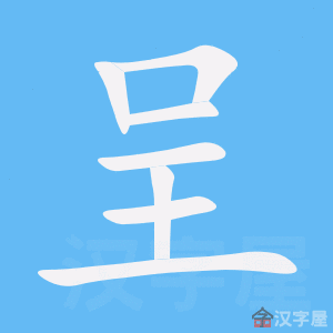 呈,甲骨文=(口,诉说,陈述)+(王,首领),表示向首领或上级禀报。造字义:向首领或上级禀报。有的甲骨文误将“王”看作“大”和“凵”构成的“出”。侯马盟书将甲骨文的“王”写成“土”。古鈢字形则将甲骨文的“王”写成“廷”。篆文与古鈢字形相同。