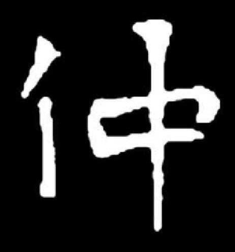zhònɡ表意,从人从中,中指中间,本义表示兄弟里排行居中的人(一般用于排行第二),引申为居中的、农历每季中的第二个月等。仲 (zhòng)中也。 【按】《釋名》:“仲,中也,位在中也。”引申兄弟排行中第二的位置。 仲 甲 金 篆 隶zhòng【析形】甲骨文、金文字形作“中”。小篆字形增意符人,变作形声字,从人中声。 【释义】《说文》:“中也。”本义为居中的。《逸周书·周月》:“凡四時成歲,有春夏秋冬,各有孟仲季,以名十有二月。”又指兄弟或姐妹中排行第二者。古时兄弟姐妹排行常以伯(孟)、仲、叔、季为序。[伯仲]本指兄弟之间的排名,后转喻为相差很小,难分优劣。[难分伯仲]比喻人或事物不相上下,难分优劣高低。 【shape analysis】In Oracle and Bronze Inscriptions it was中(zhōng)while in Small Seal script it was added the meaningful part 人and changed to the pictophonetic character.The meaningful part is人(rén,people)and the phonetic component is 中(zhōng). 【original meaning】In the middle. |