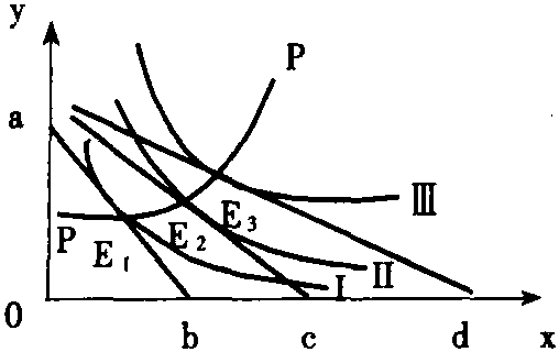 释义 | 价格-消费线Price-Consumption Curve又称“价格提供曲线”。在无差异曲线分析中,假定消费者的货币收入不变,当某种商品X的价格发生变化时,消费者预算线的斜率将发生变化。这些不同斜率的预算线将与不同水平的无差异曲线相切,连接这些切点的轨迹便是价格-消费线。下图中的PP’ 线便是价格消费线,它表示在商品Y的价格不变,而商品X的价格连续发生变化的情况下,预算线的斜率发生变化 (预算线分别由ab变为ac、ad……),这些不同斜率的预算线分别与代表不同效用的无差异曲线(Ⅰ,Ⅱ,Ⅲ,……) 相切于E1,E2,E3,…点,连接这些切点的PP’ 线便是价格-消费线。由价格-消费线可以导出商品的需求曲线。 |