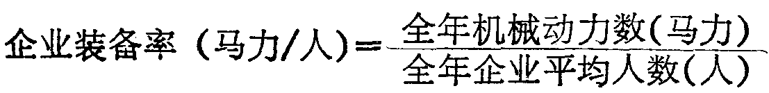释义 | 企业装备率也称动力装备程度。这是反映机械装备水平的具体指标,以每人平均配备的机械动力数表示。其公式为: 企业装备率也按全员和建安工人分别计算,其平均人数与技术装备率的平均人数相同。平均动力数为年初和年末动力数的平均数。 |