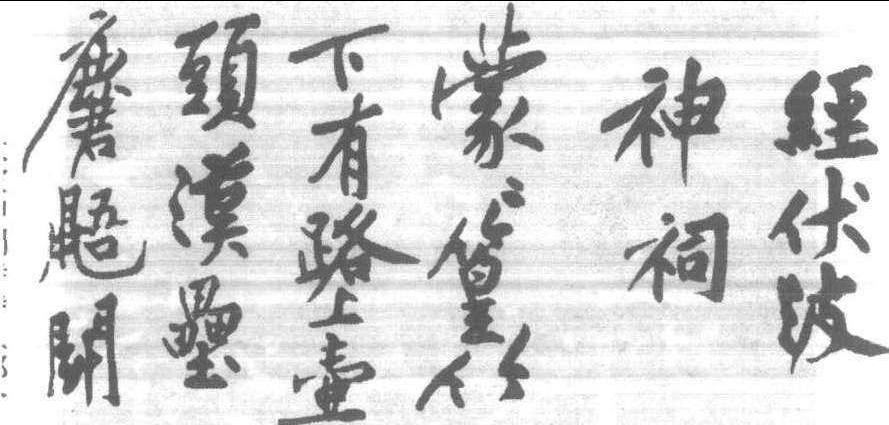 伏波神祠詩卷北宋黄庭堅書。據自跋,建中靖國元年 (1101) 五月,庭堅於荆州書劉禹錫 〈經伏波神祠詩〉一首,遂成此卷。時年五十七歲。紙本墨書,幅面寬0. 33米,長8. 2米。大字行書,近于正楷。四十六行,行三、五字不等,凡一百七十一字。鈐有“□□襲氏”、“□□黄氏”、“華夏”、“項元汴印”、“蕉林居士”、“石庵”、“永瑆之印”、“葉恭綽”、“仁濤銘心绝品”、“譚敬”、“張爰印”等鑒藏印。范成大云: “山谷晚年書法大成,如此帖毫髮無遺恨矣。心手和調,筆墨又如人意。”文徵明贊為“雄偉絶倫,真得折釵屋漏之妙”。此乃山谷晚年傑作,經宋南郡衛公、明沈周、華夏、項元汴、清成親王、近人葉恭綽、陳仁濤、譚敬、張大千等遷藏,今存日本,藏于細川家永青文庫。《聽雨樓法帖》有 摹刻,日本二玄社有影印本。