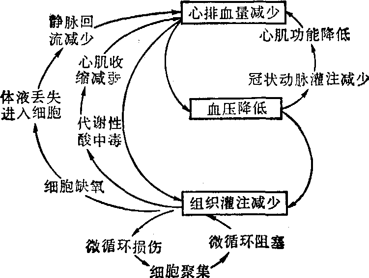 *凡用上述诸药时,应密切监视心脏充盈压和体循环动脉压。应用血管扩张剂时,同时需要补液。 (12) 应用肾上腺皮质激素: 大剂量肾上腺皮质激素治疗休克可能有效,其原理尚不清楚。可能由于其具有稳定细胞膜的作用,保护溶酶体,使溶酶体膜不易破裂,从而防止具有活性水解酶释入血流,造成代谢的严重紊乱; 大剂量时有扩张周围血管的作用,增加心排血量,在感染性休克时,可减少病人对内毒素的敏感性。然而肾上腺皮质激素抑制免疫机制,使病人容易感染,因此有人认为除非有肾上腺皮质激素缺乏,一般很少有应用的指征。常用制剂为地塞米松每日20~40mg或更大。 (13) 改善心功能: 休克可继发于心功能障碍,而心功能障碍亦可继发于休克,其因果关系有时较难分清。当有或疑有心功能不全时,应先去除其病因,如出血时恢复血容量,心包穿刺抽液以解除心包填塞,胸腔引流以解除张力性气胸,纠正酸中毒,电解质紊乱和缺氧等以去除抑制心肌的因素。在严重低血容量休克,感染性休克,体外循环,以及大量输注枸橼酸化血之后,要警惕低血钙影响心脏收缩力的可能,可用10%氯化钙静脉注射。 心肌收缩力差而心率不慢者,可用静脉滴注多巴胺,每分钟2~9μg/kg,心率慢者则可用异丙肾上腺素静脉滴注,一般仅用于有心力衰竭或休克前已有心力衰竭,中心静脉压增高,和对洋地黄治疗有效的心律失常。 (14) 纠正播散性血管内凝血: 重度休克合并播散性血管内凝血(DIC)时,应在综合治疗的基础上采用抗凝治疗和(或)抗纤溶亢进疗法。在临床无出血症状,凝血象呈高凝状态阶段,需用肝素治疗。后期纤溶亢进,临床有出血症状和凝血象明显异常,应同时应用小量肝素和6-氨基己酸类药物(6-氨基己酸类药物可以治疗DIC并发的纤溶亢进,但动物实验中,这些抑制剂可加重DIC,故认为害多于利,如需使用,应与肝素同时使用)。6-氨基己酸初剂4~6g溶于100ml生理盐水或5%葡萄糖溶液内,于15~30 min内滴完,以后每小时按1g速度持续静脉滴注,维持12~24小时,必要时可持续2~3天,待继发性纤溶基本恢复,即可停药,抗血纤溶芳酸初剂可静脉缓注100~200mg,以后每4~6小时静注100mg,凝血酸初量250mg溶于25%葡萄糖液20ml中,缓慢静注,或加入5%葡萄糖内静脉滴注每日两次。还可补充凝血因子并输新鲜血或纤维蛋白原。肝素用量为1mg/kg,加入葡萄糖内滴注,4小时后复查凝血时间,并根据凝血时间延长程度调整剂量,使凝血时间达到15~30 min,应用3~7天,病情稳定后逐步停药。有未愈合创面、咯血、溃疡病出血或脑溢血者忌用。潘生丁有阻止血小板聚集作用,减少血小板的消耗,口服每日300~600mg,也可与肝素合用。 (15) 治疗呼吸窘迫综合征: 积极治疗原发病,控制感染,避免输液过多,应用速尿类药物积极利尿。改善肺的换气功能,经过积极给氧 (3~5L/min) 后如动脉血Po2仍低于50mmHg时,可应用持续呼吸道正压呼吸(CPAP); 如同时有通气功能障碍动脉血Pco2明显升高时,可用呼吸终末正压呼吸(PEEP); 亦可试用山莨菪碱每次3~5mg/kg,每15 min一次直至肺部罗音消失,以后逐渐减量至停用。 (16) 中医治疗: 按休克的临床表现,有气脱与血脱之分。气脱者补气固脱,用独参汤,血脱者摄血固脱,用人参加黄芪或阿胶。症重者发展为亡阴与亡阳。亡阴者益气救阴,用生脉散; 亡阳者,回阳救逆,用参附汤,参附龙牡汤或四逆汤。 ☚ 难治性心力衰竭 心原性休克 ☛ 休克 休克shock是一种急性循环功能不全综合征。其病理生理特点是有效循环血量不足而引起的广泛严重的组织灌注不足。临床表现为周围循环灌注不足,如面色苍白、皮肤湿冷、发绀、神志模糊、脉细弱;尿量<30ml/h或尿闭;血压降低,收缩压<80mmHg,脉压<20mmHg。严重时可发生弥漫性血管内凝血和广泛内脏器质性损害,如肾、肝、心、肺功能衰竭。按休克的严重程度,一般分为三度,其间并无明确分界线。 ☚ 泵衰竭分级 心源性休克 ☛ 休克shock 休克shock |