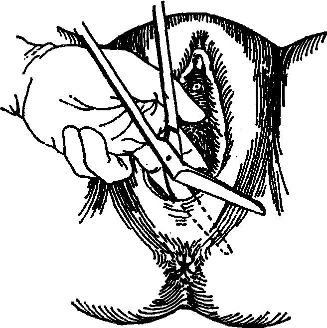 释义 | 会阴切开及缝合术 会阴切开及缝合术会阴切开缝合术是产科最常用的手术。目的为避免会阴裂伤和克服阴道口对分娩的阻力。常用的方式为会阴侧切开(见图6.11-1),偶用会阴正中切开(发达国家愿用会阴正中切开)。方法为会阴见到胎头约2—3厘米或估计约3—4次宫缩胎儿将娩出时,于会阴局部麻醉后,当宫缩时,会阴切开剪刀(纯矢剪刀)自会阴后朕合中线向左侧45°方向切开会阴,一般切口约4—5厘米。阴道内手指起到引导剪开方向及保护胎儿先露部作用。胎儿娩出后缝合会阴。缝合方法不同则拆线期不同,如普通缝合即分粘膜层,肌层及皮下层及皮肤层3层分别缝合,5—6天拆线。“8”字缝合法即分粘膜层、皮下及皮肤两层分别缝合法,48小时即可拆线。皮下不留肠线,故术后伤口疼痛轻,长合较快。 图6.11-1 会阴侧切 ☚ 催产素引产法 胎头吸引术 ☛ |