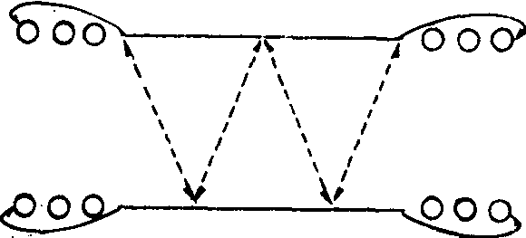 ❹两人传接球推进。体会传球落点的控制和接球传球的协调用力。