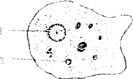 图82 痢疾为变形虫 1、细胞核 2、红细胞