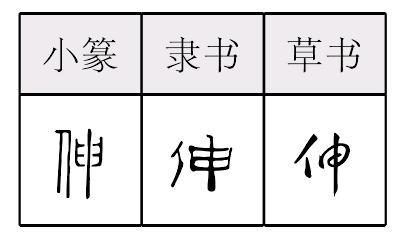 【提示】申中间的横,宋体与左右两边相接,楷体与左右两边相离。 *伸shēn7画 人部 展开;舒展开(与“屈”相对): ~展|欠~|延~|~屈自如。 伸 ☚ 傳 倍 ☛ 伸shēn甲骨文以来的申字,约到战国时有伸直,伸展义。小篆加人旁分化(有时通用)。作形声字。从亻(人),申声。伸直、伸展义。如:伸手|伸缩|屈伸。引申为表白。如:伸冤。 伸★常◎常