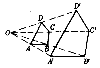 两个位似图形各对对应顶点全部都在位似中心的两旁,这两个位似图形叫做相互内位似.位似中心叫做内位似中心.如图2,四边形ABCD与四边形A′B′C′D′相互内位似.