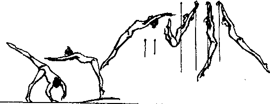 是高低杠的中难度动作。是从自由体操项目技巧动作中的基本动作——踺子移植而来的。是对传统的正向起跳握高杠作法的上法动作的革新。前苏联运动员依里因科在第21届世界体操锦标赛中首先完成。动作要领:从低杠外的站立开始,助跑,经趋步踺子过程(参见自由体操项目的该部分动作的内容),借助踏跳板梗头、吸腹、立肩、领臂向后上方的高杠方向仰式跳起,在腾空中躯干在低杠上方越过低杠,双臂顺势在头部上方微向后振,双手旋内成扭臂握住高杠,顺势收腹举腿同时臀部与背部在杠中下落,双腿随之越过低杠,自然下摆至悬垂。可先用皮筋替代低杠,帮助者站在杠中的正面,当练习者做踺子向后上方跳起之后,用双手托其腰部帮助调整其腾空的方向并助其握高杠。在正式器械上做亦应如此帮助。