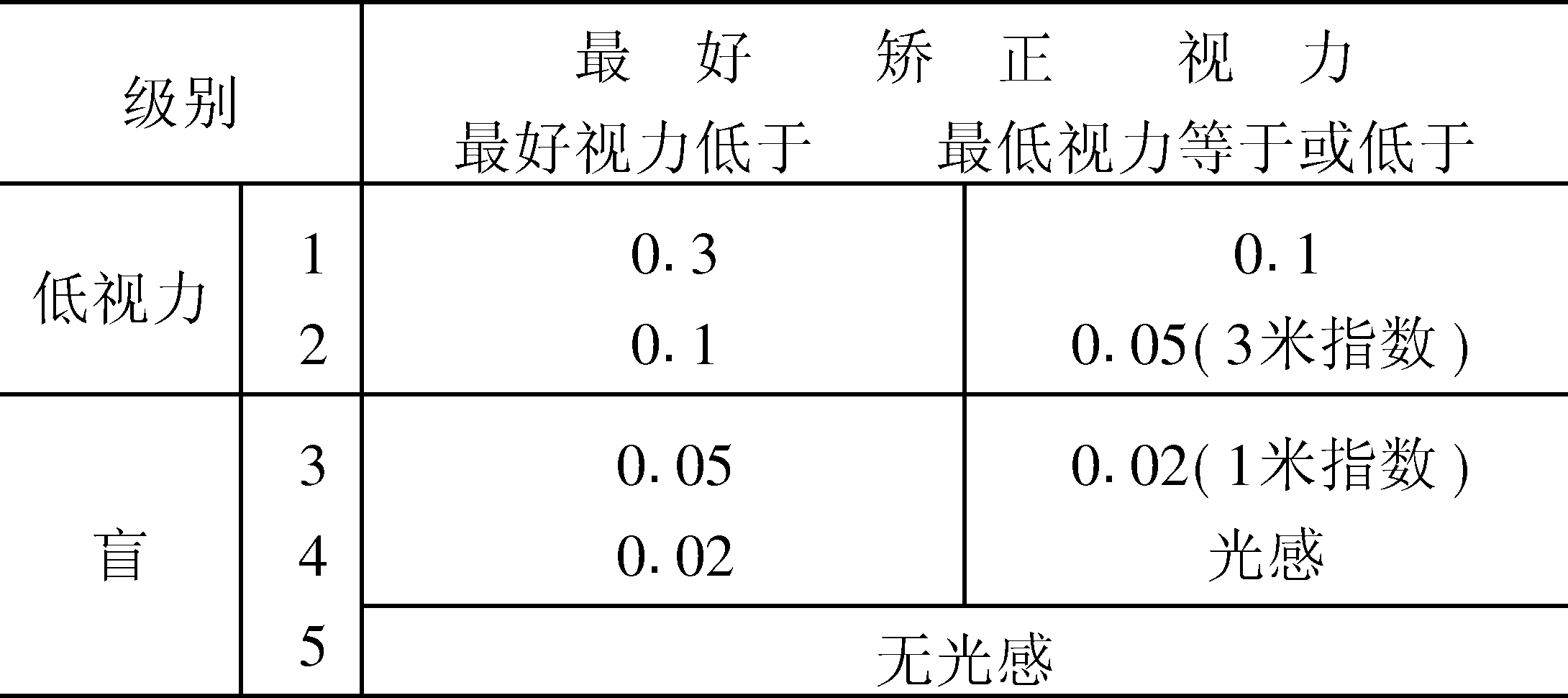 字词 | 低视力及盲目分级标准 |