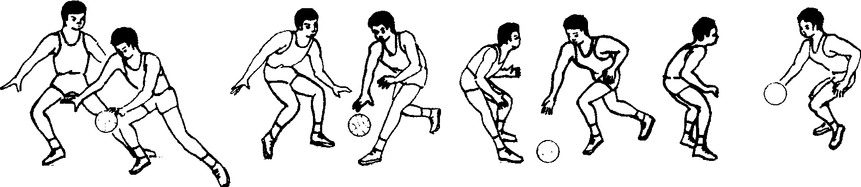 ☚ 行进间直线运球 运球接力比赛 ☛ 体前变向运球 体前变向运球当对手堵截运球前进的路线时,突然向左或向右改变运球方向,借以摆脱防守的一种运球方法。练习时,运球队员欲从对手左侧突破,先向对手右侧快速运球,然后向左侧变向。变向时,左手按拍球的左后上方,使球从自己身体左侧弹向右侧,左脚迅速向右前方跨步,上步右转,以肩、臂和腿保护球,换右手按拍球的右上方,靠近对手左侧运球突破。老年人可做原地变方向运球练习,体会变向时转体、跨步、按拍球的部位和用力方法;行进间运球至固定目标前变向练习,加强手臂动作和步法的协调配合;在有防守情况下练习体前变向运球,提高观察判断和控制球能力。 ☚ 行进间直线运球 篮球比赛规则 ☛ |