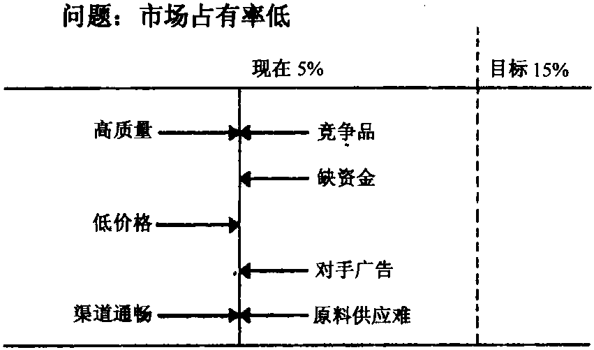 进行作用力场分析分三步:(1)绘制作用力场图。作用力场图是描述影响目标的各种因素的图表。现将上面所举的例子制图,见图11-18。图11-18中,中间的实线表示现在情况,右边的虚线表示将来想达到的情况即目标,指向目标的箭头表示推动力,背离目标的箭头表示限制力。在列举各种影响力量时,要尽可能地全面,以免影响以后的分析。同时要使目标明确,因为模糊的目标是难以衡量和分析的。一般减弱一个限制力要比加强一个推动力对目标的贡献更大,因为在加强一个推动力时,有可能使限制力也同时变大了。例如,降低价格,将增加价格上的推动力,但会使企业资金减少,限制力也增大了。(2)将作用力按重要程度排序。重要程度可以定为对目标的影响程度。排序可以按推动力排,也可按限制力排,如果按推动力排,出于上述的原因,需注意在加大推动力时可能带来的负面影响也就是限制力。排序方法可采用穆迪次序图分析法(参见“穆迪次序图分析法”)。(3)选择行动方案。根据第二步选出的重要的作用力,考虑加强该作用力(推动力)或削弱该作用力(限制力)的方案。作用力场分析法不仅可以用于企业,也可以用于个人、家庭和社会团体的决策,用途非常广泛。 ☚ 鱼缸观鱼法 穆迪次序图分析法 ☛ |
