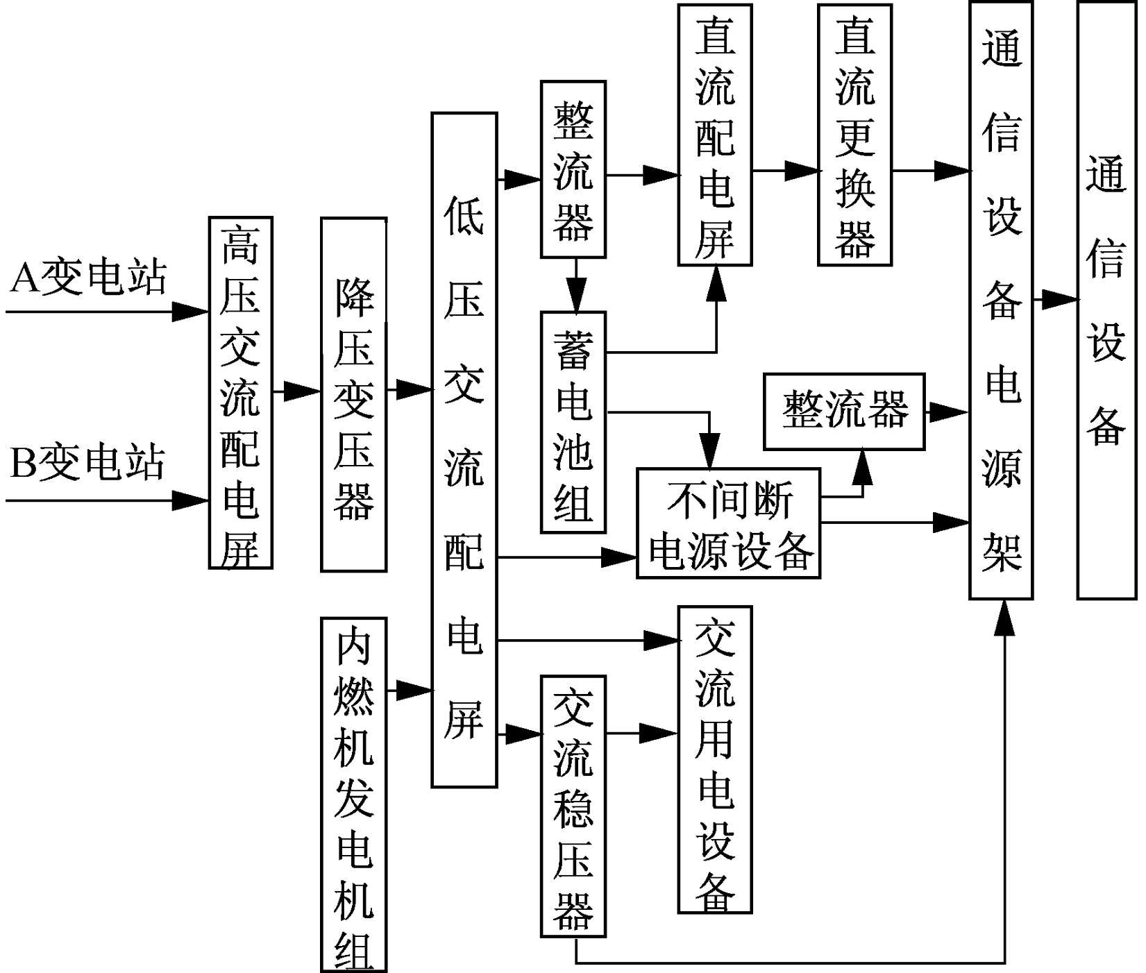 释义 | 供电系统gōng diàn xì tǒngсистéма электроснабжéния (энергоснабжéния)供电系统 供电系统power supply system按照通信设备等供电要求连接成的电源设备总体。由交流供电系统和直流供电系统组成。前者包括降压变压器、内燃机发电机组、不间断电源和高、低压配电屏等。为了提高供电的可靠性,较大的通信局(站)通常引入两路高压市电,一主一备切换使用,再经降压变压器将高压(10kV)变为低压(380/220V)。市电中断,则由自备交流电源,如内燃机发电机组、不间断电源供电。后者包括整流器、蓄电池组、直流变换器和直流配电屏等。整流器将交流电变为直流电,对蓄电池充电或与蓄电池并联浮充对通信设备供电。直流变换器将一种直流电变为另一种直流电,以适应通信设备的要求。供电系统已逐步采用微机监控管理,可将供电系统运行状态和各种电气参数送到微机监控管理中心,进行集中监控管理,实现少人或无人值守。 供电系统框图 ☚ 基础电源 远距离供电系统 ☛ |