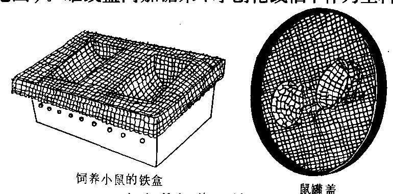 小白鼠 又称小鼠,是野生小家鼠的变种。它繁殖快,体型小,管理方便,价格低廉,故应用甚广。它白天较少活动,常集群而卧,傍晚活动增强,入夜达到高峰。其饲养室最适温度为18~22℃,相对湿度为50~60%,忌骤冷骤热。 小白鼠在鼠罐或鼠盒中饲养,罐或盒的上盖以铁丝编制,网眼不应大于3毫米;盖上有饲料筐和水瓶插斗(见图)。罐或盒内加锯末、小刨花或稻草作为垫料;