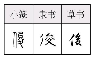 jùn形声,从人,夋(qūn)声,本义为才智超群的人,引申为相貌清秀漂亮。 【辨析】 俊/骏/峻 见212页“骏”。 |