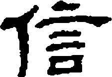 信 信,金文作 ,《説文》古文作 ,小篆作 。 一般解釋爲从人从言,人亦聲; 或从言,人聲。“人” 或作“身”,或作 “千”,“人”“身”“千”古音相近。“言”或作 “口”,二者義近。又或兼用 “玉” 和 “心”,《説文》解釋 “瑞”字説 “以玉爲信也”,則 “信” 字所从之 “言” “口” “心” “玉”亦似皆爲意符,則 “信” 字爲形聲兼會意。以上金文字形多不流傳,而 《説文》古文或沿襲第二字形, 隸定作 “㐰”。銘文或用本義, 或用作人名。 楚簡帛文作 ,沿襲古體。秦簡牘文作 ,已近今體而篆意猶存。