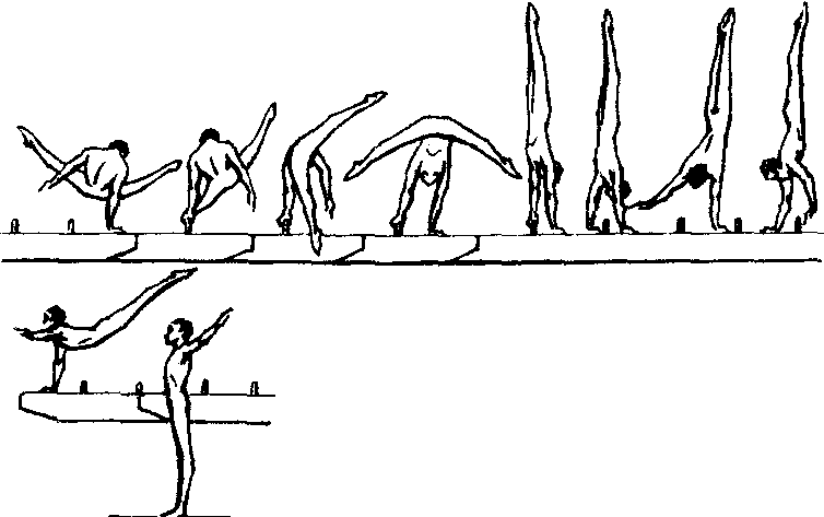 释义 | 倒立移位转体下 倒立移位转体下该动作在鞍马项目中属高难度动作。中国运动员李宁在第23届奥运会上成功地使用了该动作,并获得鞍马项目的金牌。该动作是中国运动员在第23届奥运会上独创的难新动作。该动作由异侧马端托马斯全旋开始,左手撑鞍环,右手撑马端,出腿时放右手,提高身体重心位置,右手撑马端,经马端分腿俯撑,迅速提起至倒立,并腿同时身体向左移动重心,左手撑马中,迅速向右转体180°,右手推离异侧马端,随身体转体,移撑异侧马端,经左手撑环中,右手撑同侧马端的倒立,身体继续向右转体90°,放左手俯腾越下,站立马端左侧。 该动作要求经倒立时能很好地控制和移动身体重心,转体要连贯,中间不应出现停顿。 初学时可在无腿双环鞍马上由教练员托扶运动员体会动作过程,然后运动员自己在马端蹬地起倒立后练习移位转体动作。待掌握后再由托马斯全旋起倒立后做移位转体动作,最后过渡到鞍马上完成。该动作还可有其它不同的做法,如环上起倒立后,经马中至马端倒立移位转体下等。 1985年国际体联规定,该类动作若在完成倒立后再做转体动作,不属于鞍马项目特点,因此不增加其难度。 ☚ 并腿起倒立下 直接的施托克里A隔环跳平移至马端倒立下 ☛ |