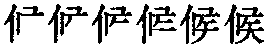 候Hòu现行较罕见姓氏。今河北之景县、天津之武清、内蒙古之乌海、江西之崇仁、云南之泸水等地均有分布。汉族、彝族有此姓。《郑通志·氏族略》亦收载。其注云: “《周礼》候人氏,子孙因氏焉。”候人,周代官名。《周礼》夏官之属,送迎宾客之官。此当以官为氏。 候hòu❶伺望。張衡《西京賦》:“迾卒清候,武士赫怒。” ❷伺望敵情的設置。揚雄《羽獵賦》:“欃槍爲闉,明月爲候。”杜篤《論都賦》:“立候隅北,建護西羌。” ❸供人停憩的小亭。張衡《東京賦》:“西登少華,亭候修勑。” ❹時令,季候。古人稱五日一候,以草木鳥獸的生長發展來驗證月令的變化。張衡《西京賦》:“上春候來,季秋就溫。” 候 候孟超著。1927年9月上海光华书局初版。收《一对恋人》、《反抗的呼声》、《战场上的野花》等诗53首。 ☚ 革命花 翡冷翠的一夜 ☛ 候 伺望。《国语·晋语》八:“候遮扞卫不行。”注:“候,候望。” 1.通“堠” hou 〔例一〕 《墨子·备城门》:“三十步置坐候楼。”候楼,瞭望所。候通“堠”。 〔例二〕 《后汉书·光武帝纪》:“巩亭候,修烽燧。”亭候,即“亭堠”。 候,匣母、侯部;堠,匣母、侯部。匣母双声,侯部迭韵,属双声迭韵通假。 2.通“郵” you 〔例〕 《后汉书·西羌传》:“缮城郭,置候驿。”候驿,《后汉书·袁安传》、《后汉书·卫飒传》均作“邮驿”。候通“邮”。 候,匣母、侯部;邮,匣母、之部。匣母双声,侯、之旁转迭韵,属音近通假。 候读音h·ou(ˋ),为ou韵目,属ou—iu韵部。胡遘切,去,候韵。 ❶等候;等待。 ❷问候;问好。 ❸看望。 ❹古代称五天为一候。 上一条: 侯 下一条: 堠 候hòu等,守候:算了,咱们都别~在这儿了!快回屋去眯楞一觉吧,我爹他们也不会怪罪的。(思妃《天叹》)∣你看看,真白瞎了这么个大个子了,天天在那里~着。(丁一夫《东北人是咋样的》) 候hòu❶交款,付账。〔例〕好!老武!谢谢你! 饭账我候啦。 告诉我,你还吃什么?!(文一245)∣“不认识!怎么候澡钱呀?”(堃10)∣你们二位的饭钱,马老板候了。(台三269) ❷迎候。〔例〕人家那位中人呢, 提着个黑芝麻皮公事包儿,早候在前厅了。(味263)∣维克穿着一身浅灰色的休闲服,在小楼的栅栏门候着我呢。(根260) 候〔hou〕 dangl; houb. 候补 〔hou bu〕 houb but. 候ㄏㄡˋhòu四4938①动付帐,会钞请客。⑴北京官话。北京〖 〗。你们吃啊,今儿个的钱我~啦‖您别掏钱了,他已经~啦。老舍《赵子曰》:「好!老武!谢谢你!饭帐我~啦!告诉我,你还吃什么?」《常宝堃相声选》:「不认识!怎么~澡钱呀?」⑵中原官话。河南宜阳。清光绪辛巳年《宜阳县志》:「众人聚饮食,一人出钱为~,众人付钱谓打平和。」《歧路灯》第七二回:「谢豹说~二人饭钱,二人不肯。」⑶江淮官话。江苏盐城〖 〗。大不了我~你一顿。②动凑;接近;接住。吴语。上海〖 〗。等伊找上门来,侬𧟰~上去‖柜台忒高勒,伊~勿着。上海松江。《上海民间故事选・一钱如命》:「看见一群小孩在玩铜板,他用裤脚管~住,一个小孩的一枚铜板果真飞到他裤脚管里。」③动估量;算准。吴语。上海〖 〗。~好尺寸再做衣裳。④动相合;符合己意。吴语。浙江宁波。应钟《甬言稽诂・释行事》:「《尔雅・释诂》:『偶,合也。』合、偶声合如~。今谓两物相合,适相匹会,呼为~。引申为求合亦云~,如市物求直之合己,俗亦谓之~。」⑤动切脉;诊脉。闽语。福建厦门〖 〗。⑥动背靠着。闽语。福建莆田〖 〗、仙游〖 〗。⑦动冲上去。江淮官话。江苏盐城〖 〗。我还没说什哩,他就~上来了。⑧名一会儿。闽语。福建莆田〖 〗。⑨副就。吴语。江苏启东吕四〖 〗。⑩副十分;非常;很。吴语。浙江黄岩。⑪介随;由;听凭。吴语。上海〖 〗。《五姑娘》:「今朝~侬吃茶吃酒斜乐胃,五姑娘身边摸只小花洋。」   候hou❶守望,观察。韩愈《顺宗实录》:“上每进见,~颜色,辄言其不可。”(皇上每次召见时,他要观察皇上的脸色,往往说不行。辄:往往。) ❷征兆。李格非《洛阳名园记论》:“洛阳之盛衰,天下治乱之~也。” 候hòu❶看望;问好 △ 问~。 ❷等待 △ 请稍~|~车。 ❸指气象情况 △ 气~。 ❹时令 △ 季~|~鸟。 ❺变化着的情况或程度 △ 症~|火~。 ❻姓。 【注意】跟“侯(hóu)”不同,中间多一竖。 候❶等待:~补︱~光︱~教︱~审︱~诊︱~车︱~场︱守~︱立~︱迎~︱伫(zhu)~︱少(shao)~︱恭~︱伺(ci)~︱侍~。 ❷侦察:斥~。 ❸看望;问好:问~︱致~。 ❹时节:~鸟︱季~︱时~︱气~。 ❺我国古代把五天叫一候,现在气象学上仍沿用:~温。 ❻事物变化的情况、程度:征~︱症~︱火~。 候hòu❶ 等待:等候│候补│候车室。 ❷ 看望,问好:问候。 ❸ 照料,服侍:伺候│侍候。 ❹ 时节,时令:候鸟│气候│时候。 ❺ 状况:火候│征候。 ❻ 姓。 候hòu❶付,交的意思。如:今儿的茶钱我~啦! ❷等候,等。如:老几位,后儿,还在这儿,我~着您。 候hou候补 候差 候场 候车 候教 候鸟 候缺 候审 候选候诊 拜候 病候 伺候 恭候 火候 敬候 静候 气候 时候 守候 天候 听候 问候 物候 迎候 征候 症候 候车室 候船室候选人 候诊室 成气候 大气候 全天候 小气候 候补委员 全天候服务 候hòu❶等候:且说黛玉自那日弃舟登岸时,便有荣国府打发轿子并拉行李的车辆久~了。(三·52)老先生请便!晚生乃常造之客,稍~何妨。(一·15) ❷问候:(宝玉)因想起近日薛宝钗在家养病,未去亲~,意欲