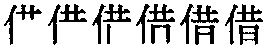 【提示】在汉字简化前,表“假借,依赖” 义时,“借”又写作 “藉”; 表 “借用”的意思时,“借” 没有繁体。“藉” 读jí、用于 “践踏” “杂乱” 义时 (如狼藉),读jiè、用于 “垫子”“垫” 义和 “慰藉” 等词中时,不能简化作 “借”。右下的日,中间一横宋体与左右两边相接,楷体与左边相接,与右边相离。 *借1jiè10画 人部 (1) 借入;暂时用别人的财物: ~据|~用|~宿|~你的笔用一下|我向他~了十块钱|我在图书馆~了一本小说。 (2) 借出;将财物暂时给别人用: 我把自行车~给小李了|这本书只能~给你三天。
