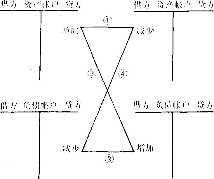 以“有借必有贷,借贷必相等”作为记帐准则。一笔经济业务发生了,根据它所涉及的资金增减变化的内在联系,以同等金额分别记入各有关科目的借方和贷方,以保持借贷双方相互的对应关系,做到有借必有贷,借贷必相等。尽管经济业务千差万别,但其增减变化不外乎四种基本类型: ❶某项资产增加,同时另一项资产减少; ❷某项负债减少,同时另一项负债增加; ❸某项资产增加,同时另一项负债增加; ❹某项负债减少,同时另一项资产减少。 这四种情况,反映在资产帐户和负债帐户上,如图9—2所示。 图9—2 根据复式记帐法的平衡原理试算平衡。由于借贷记帐法在处理每笔经济业务时,都贯彻“有借必有贷,借贷必相等”的记帐准则,金额相等,方向相反。因此,各科目所属帐户的借贷方累计发生额及其最终余额,都必然保持不同方向的数量平衡。它的试算公式是: 各科目借方发生额合计=各科目贷方发生额合计 各科目借方余额合计=各科目贷方余额合计 例如,银行对企业发放一笔贷款转入其存款帐户。这是一笔转帐业务,按照记帐准则,确定会计分录是:(借)××贷款科目,(贷)××存款科目。又如,企业向其开户行的存款帐户存入一笔现金,这是一笔现金收入业务,其会计分录是: (借)现金科目,(贷)××存款科目。再如,另一单位从其开户行存款帐户提取一笔现金,这是一笔现金付出业务,其会计分录是:(借)××存款项目,(贷)现金科目。现金属于资产,与其他贷款科目一样,其余额反映在借方。 ☚ 资金收付记帐法 银行会计凭证 ☛ 借贷记帐法 借贷记帐法以资金平衡原理为基础,以 “借” 、“贷”为记帐符号的一种复式记帐法。其特点是: (1)在资金占用类帐户的借方反映增加,贷方反映减少; 在资金来源类帐户的贷方反映增加,借方反映减少。(2) 记帐规律是“有借必有贷,借贷必相等”。(3) 试算平衡式为: 各帐户期初借方余额合计等于各帐户期初贷方余额合计; 各帐户本期借方发生额合计等于各帐户本期贷方发生额合计; 各帐户期末借方余额合计等于各帐户期末贷方余额合计。 ☚ 农村资金来源 增减记帐法 ☛ 借贷记帐法 借贷记帐法以“借”、“贷”为记帐符号,在经济业务引起资金变化的双方帐户中,以方向相反、金额相等的方式进行登记的复式记帐方法。其要点:(1) 以“借”、“贷”为记帐符号。“借”、“贷”二字因帐户性质的不同,而有不同的含义: 资金占用帐户的借方反映增加,贷方反映减少,余额在借方,表示资金占用的实有数额; 资金来源帐户的贷方反映增加,借方反映减少,余额在贷方,表示资金来源的实有数额。(2) 帐户可以不固定分类。除设置资金占用、资金来源两类帐户外,还可以适应管理的要求,设置既是资金占用又是资金来源的双重性帐户。如“其他往来”、“待摊和预提费用”等。这些帐户以其余额的方向来判别帐户的性质,借方余额属资金占用,贷方余额属资金来源。(3) 记帐规则: 有借必有贷、有贷必有借、借贷必相等。(4) 试算平衡方法: 所有帐户本期发生额的借方与贷方平衡,所有帐户的借方余额和贷方余额平衡,用以检查帐户记录的正确性和完整性。其平衡公式为: ☚ 复式记帐法 增减记帐法 ☛ |