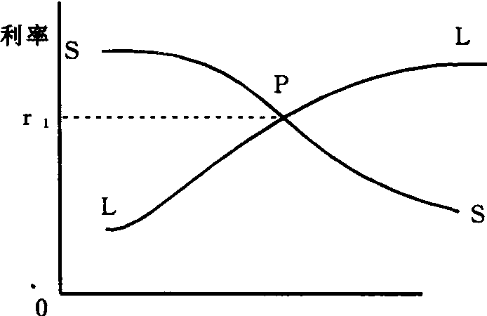 图16-6中,横轴表示现在收入,纵轴表示市场利率。曲线LL为借款人对现在收入的不耐程度。它从左下方向右上方倾斜,表明利率随借款人的不耐程度的提高而提高,即利率随借款人对现在收入需求的增加而增加。曲线SS为贷款人对现在收入的不耐程度。它从左上方向右下方倾斜,表明利率随借款的低不耐程度而下降,即利率随贷款人提供的现在收入量的增加而减少。只有在两条曲线的交叉点P上,借款人与贷款人的不耐程度相等。当借贷市场处于均衡状态时,市场利率才由借款人的不耐曲线和贷款人的不耐曲线的交点决定。