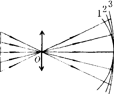 而最小清晰圆所形成的曲面可认为是成像最清晰的像面,即像面是弯曲的。实际上,即使像散性像差已经消除,每一物点可成一个清晰的像点,但垂轴平面物所成的像仍是弯曲的。像场弯曲常给实用带来麻烦,例如为了得到清晰的照片,必须把感光板做成弯曲的形状。对于已经消除像散的光学系统,像场弯曲的大小与各透镜的形状及光束截面的大小无关,只决定于各透镜的焦距及其折射率。为了矫正光学系统(如照相物镜)的像场弯曲,要采用多透镜的组合系统,并要适当选取各透镜的焦距和折射率。