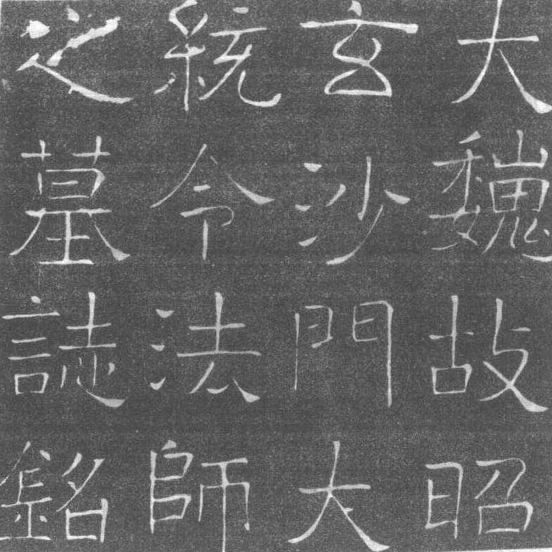 释义 | 僧令法師墓志北魏·永熙三年 (534)二月刻。正書四十一行,行二十二字。蓋正書題“大魏故昭玄沙門大統令法師之墓志銘”四行十六字。書多篆、隸意,寬博流美,結體嚴整。鎸刻粗獷,呈刀痕之迹。民國十八年 (1929),于河南省洛陽東北蟠龍塚村西出土。嘗歸三原于氏。趙萬里《漢魏南北朝墓志集釋》輯入。 僧令法师墓志·蓋 |