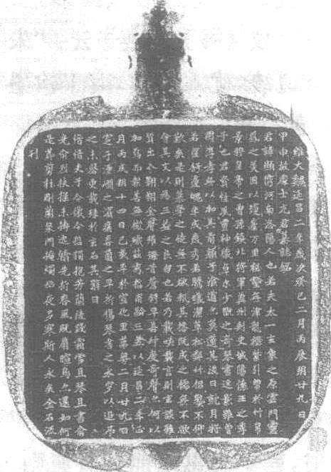 释义 | 元显雋龟形墓志 元显雋龟形墓志北魏延昌二年(公元513年)。长71.5厘米,宽50.3厘米,高38厘米。1918年河南省洛阳市北朝墓出土。江苏省南京博物院藏。墓志为龟形,有盖,盖题“魏故处士元君墓志”八字。楷书志文19行,刻于龟背甲上,起首为“维大魏延昌二年岁次癸巳二月丙辰朔廿九日甲申故处士元君墓志铭”。此志石造形生动有趣,笔法清晰工整,颇受各家重视,但亦有人疑为伪作。《芒洛冢墓遗文》、《九钟精舍金石跋尾乙编》、《汉魏南北朝墓志集释》均有此志石著录。 ☚ 王兴之墓志 陶弘景楷书瘗鹤铭 ☛ |