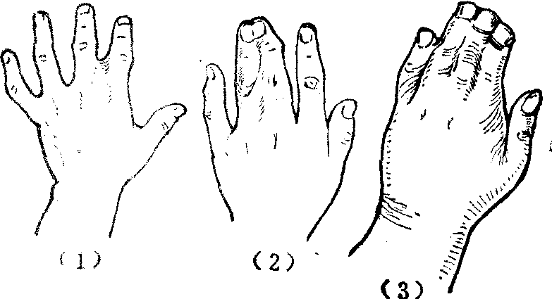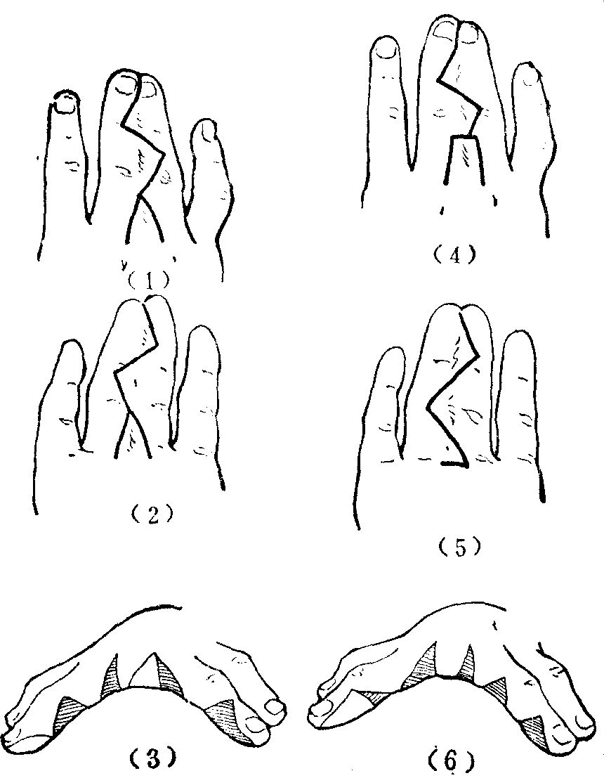 释义 | 先天性并指 先天性并指先天性并指也是多见的一种畸形,仅次于多指。 ☚ 先天性多指 先天性缺指 ☛ 先天性并指 先天性并指相邻手指互相融合连为一体,称为并指,为较常见的手先天性畸形。常与并趾、多指(趾)、短指(趾)、指(趾)或前臂(小腿)缩窄环以及同侧胸大肌发育不良或缺如等畸形合并存在。并指也可为某综合征的手指表现。并连仅限相邻两指之间者,称为单一并指;超出两指以上者,称为多指并指。由示指至小指四指完全并连者,称为连指手套样手畸形,可见于Apert综合征(见“Apert综合征”)。由指根部起,并连向远端延伸,但不达指端者,称为不全并指;直至指端者,称为完全并指。仅以皮肤软组织相并连者,称为单纯并指; 末节指骨指甲亦相融合并连者,称为复杂并指(图1)。单纯并指,两指间距离较远,皮肤软组织较薄弱者,称为膜状并指。仅限于指端间的互相聚合并连者,称为指端并指,其成因与一般并指不同,常与短指、小手或先天性指缩窄环并存(图2)。最常见的先天性并指畸形为发生于中环指间的单一、完全、单纯并指。多指并指较少见,包括拇指的并指罕见。由于指根部间瘢痕粘连所造成的不完全并指,称为后天性或继发性并指,多见于烧伤创面瘢痕愈合之后。 图1 各种类型的并指 图2 指端并指及先天性小手畸形 先天性并指的生成,是在胚胎第7~8周时,掌板远端、名指间分离不全所致,指端并指则可能是分离以后在指端又因故发生粘连所致。 并指的治疗,须行手术分离。手术时间,如并连手指在患儿生长发育过程中,未因相邻手指的长度和关节的水平部位不同而出现互相牵制使指间关节活动受限或导致手指侧屈畸形时,一般以在3岁以后至学龄前的期间内施行为宜。过早施行手术,术后创口瘢痕常可影响手指的正常发育,且手指纤细短小,也不易准确进行手术操作。 并指手术方法,包括并指分离、指蹼形成、创面修复等主要步骤。并指分离忌行纵向直线切口,应在背侧和掌侧作成互相对应的锯齿状或方向相反的Z形切口。切开皮肤后所形成的名三角形皮瓣可以分别向每一手指的背侧或掌侧移转缝合,既可用于修复并指分离前所预见的截骨骨面或指间关节部位的创面,且使创缘不至呈直线方向。指蹼形成,可以采用在相并两指根部的背侧和掌侧各制备一小的等腰形三角形皮瓣,或一个较大的距形皮瓣的术式构成(图3)。在切开皮肤后分离并指的操作过程中,应注意观察神经、血管、肌腱等解剖结构有无变异,必要时可向近心端追溯探明,如有异常,则须据情适当调整合理配置。复杂并指的指甲纵行割开后,并连的指骨多仅限于末节,截开后的骨面,应尽可能以在设计切口时所预先备妥的皮瓣修复,如无此条件时,可用局部软组织移转缝合覆盖,留待创面修复时行皮片移植术。切开的关节囊应以细肠线缝合。并指的分离须完全彻底直至指根部。随后将指根部的两个小三角形皮瓣相向交错缝合,或将背侧矩形瓣向掌侧移转缝合,以形成具有正常长度和宽度的斜坡状指蹼,这对并指术后外形和功能的恢复十分重要。并指分离后,两指指侧创面的修复,不能错误的期望可以进行简单的直接缝合,如强行牵拉缝合,将因张力过大以至创口裂开,瘢痕形成发生挛缩,妨碍手指功能。因此,创面的修复须行皮片移植术,以补充皮肤的不足。 图3 并指分离和指蹼形成的切口 多指并指,宜分次手术,以免在一个手指的两侧同时切开所可能发生的供血不足。 先天性指端并指的治疗,为将聚连的各指切开分离,由于指端的发育不良和变形,常尚须进行局部修整手术。 继发性并指的修复,可参照先天性并指的手术原则进行。 ☚ 多指 先天性手缩窄环 ☛ |