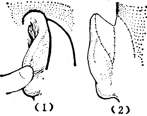 释义 | 先天性隐耳 先天性隐耳隐耳又称袋状耳,为先天发育畸形,常为两侧。畸形表现为耳廓软骨上端隐入颞部头皮的皮下,紧贴颅侧,该部耳廓前侧面的皮肤与头皮相连而位于同一平面,无耳廓后沟与颅侧相隔。埋入部分可用手指提起拉出,但松开后,即因皮肤的紧张和软骨的弹性而复缩回原位。此外,常合并对耳轮及其后脚的皱襞角度过锐,上部耳轮呈锐角卷折,舟状窝发育不良等畸形,以致耳廓上半宽度不足,状若下半的倒影,呈两端较锐的椭圆形(图1)。因无耳廓后沟,戴眼镜甚感不便,淋浴时水流易注入外耳道内。 图1 隐耳 手术治疗原则,在于经切口将隐入皮下的耳廓软骨上端解脱出来,并设法闭合在耳廓后侧和颞部所出现的创面,以建立具有适度和稳定的耳廓后沟。游离植皮法,虽简单易行,但如全部创面均用皮片修复,由于皮片后期收缩,难以保持稳固可靠的疗效。故应充分运用在颞部发际线外和耳后乳突部的皮肤所形成的局部皮瓣修复创面,不足部分再以皮片补充。如可用颞部的三个三角形皮瓣法封闭耳廓后侧的创面(图2)。或用乳突部的局部推进皮瓣法,闭合颞部的创面(图3),手术效果即可稳定。 图2 颞部三角形皮瓣修复法 图3 乳突部的推进皮瓣修复法 如有合并畸形,也应进行适当矫正,以进一步提高疗效。 ☚ 先天性垂耳 先天性猩猩耳 ☛ |
