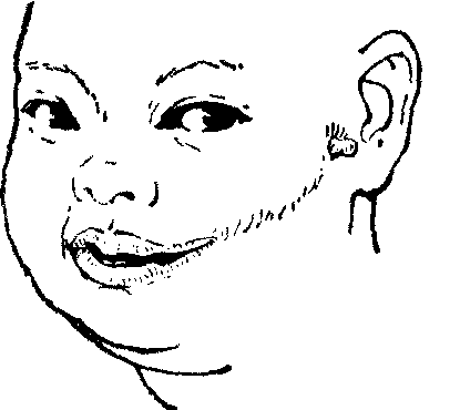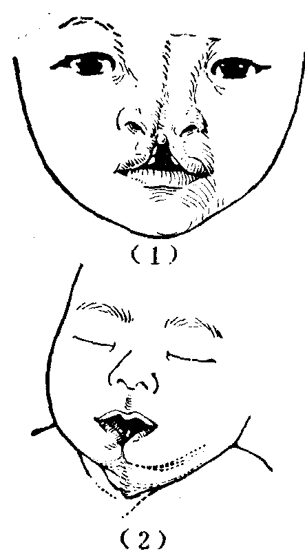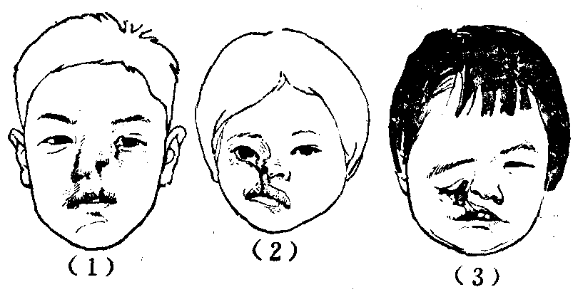 释义 | 先天性颜面裂 先天性颜面裂胚胎期形成面部的几个突起融合发生障碍,发育停滞、失常(参见“先天性唇裂”)而致颜面某些特定部位所遗有的裂缝裂口,称为先天性颜面裂。其中以先天性唇裂、腭裂为最常见。此外,还有较少见或罕见的先天性颜面正中裂、斜裂、横裂等。 图1 颜面正中裂 上部正中裂为鼻中突和球状突发育障碍的结果。裂始于上唇中央部的红唇。轻型者,裂限于口唇。重型者,裂沿颜面中线由口唇向上延伸,还有鼻小柱、鼻尖的正中裂,鼻梁和眶距都较正常增宽,但两侧鼻骨间并无裂缝。口内,可见两侧中切牙之间的间隙增大,双重上唇系带和鼻棘,切牙骨分为左右两半。次腭正常。治疗原则,唇裂可经沿两侧缘的切口,按粘膜、口轮匝肌和皮肤分层缝合修复。鼻部裂,于中央区作自鼻尖伸展至眉间额部的纵向梭形切口,切除局部皮肤和皮下组织,显露鼻骨。畸形较轻者,可行软骨或骨移植将平坦的鼻梁垫高。畸形严重者,需按眶距增宽症行截骨术的方法整复(见“眶距增宽症”)。还需将两侧的鼻侧软骨和鼻翼软骨在中线互相缝合,最后缝合皮肤。 下部正中裂为两侧第一及其以下的鳃弓在中线部位互相融合失败的结果。裂始于下唇的中央部,轻型者裂局限于唇部。但大多还包含下颌、口唇、舌以及颈前等部异常的多发重型畸形。表现为下颌骨中线部的分裂。舌前部分为两半。各以致密的纤维组织带与左右分离的下颌骨相连,舌系带短缩,舌裂的底部与下颌骨裂两侧的牙槽缘连接,甚者舌可缺如。通常无舌骨,甲状软骨发育不良。颈前肌群萎缩,成为挛缩的纤维组织索条,使颏处于前屈位。由于颈前软组织的薄弱,对气管和肺等器官的支持力不足,当患儿哭闹挣扎时,可见颈前和胸骨部向前膨隆。最严重型,两侧锁骨远离,胸骨柄缺如。治疗需分期手术。应首先进行软组织的修复,如唇裂的修复缝合,舌系带短缩和颈前的纤维组织索条所形成的蹼状挛缩行Z成形术松解延长,以解除进食困难和对下颌骨发育所造成的障碍。有时还需行皮瓣移植术以补充皮肤组织的不足,形成接近正常的颏颈角。下颌骨的分裂,须俟婴儿期以后行骨移植修复。 先天性颜面斜裂 系鼻侧突与上颌突间的融合障碍所致。为位于口腔与眶窝之间的颜面裂。多为单侧,偶见双侧。除口唇面颊的裂缝和下睑的局部缺损外,还可见有小眼球、眼球皮样囊肿、翼状胬肉等,以及泪道的异常。斜裂,可分为鼻-眼裂、口-眼裂、混合裂等三类(图2)。 图2 颜面斜裂 鼻-眼裂为由唇经鼻侧至下睑的颜面裂,有鼻翼裂。裂可深及上颌骨和眶缘眶底。 口-眼裂又以骨裂位于眶下孔的内侧或外侧分为两型。内侧型,裂通常由唇弓嵴的外侧开始,经鼻唇沟向上止于内眦部位或眶下孔内侧方的下睑。鼻翼完整无裂。外侧型,裂始于接近口角部位的上唇,向上止于外眦或中外侧的下睑缺损,无鼻翼裂。 混合裂表现为鼻-眼裂与口-眼裂不同程度的综合畸形,常多较严重。 颜面斜裂的治疗,也需分期进行手术。包括唇裂的缝合,和面裂部的单一或连串Z成形术修复,以充分运用裂两侧的皮肤软组织修复裂口,并增加裂部的长度,眼睑缺损,如有正常视力存在时,应尽早修复以保护角膜。眼部还需行内眦韧带的复位固定,以及有关泪道的手术等。泪道因面裂而被分离阻断,多难修复,泪囊由于常易发生感染而需行摘除手术,此外,还需修复鼻翼裂或延长短缩的鼻翼,以及骨移植以修复眶缘、眶底和上颌骨的骨裂等手术。 先天性颜面横裂 为由于第一鳃弓的上颌突与下颌突融合失常的结果。裂始于一侧口角,向侧外上方经颊部延伸,甚者裂痕可远至耳廓上方。裂的程度轻重不等。轻者表现为皮肤的沟状凹陷。重者裂入口腔,称为大口畸形。裂口止于嚼肌前缘,再继续以沟状凹陷向侧外上方延伸(图3)。常为伴有嚼肌、上颌骨、颧骨、耳廓等发育不良的第一、二鳃弓综合征的颜面畸形表现(参见“第一、二鳃弓综合征”)。 图3 颜面横裂 颜面横裂的治疗,如仅为皮肤软组织的沟状凹陷,可沿凹陷的两侧边缘切开,切除凹陷底部的表层组织后,按Z成形术原则缝合。不可缝成一条直线。如有大口畸形,还需沿裂口将粘膜、肌层、皮肤各层细心分离后逐层严密缝合。须特别注意口角的准确定位,务求两侧对称。 ☚ 颅面外科 眶距增宽症 ☛ |