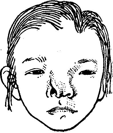 先天性鼻正中裂 系在胚胎发育的第5~7周期间,颜面部出现的鼻中突及于其下端所分化出的两个球状突,未能按正常进程在中线部位左右两侧互相融合所致。常为先天性颜面正中裂畸形的鼻部表现。畸形程度较轻者,表现为鼻小柱和鼻尖部增宽,正中有沟形凹痕,两鼻孔间距离增大,鼻翼软骨和鼻侧软骨向外方移位。程度较重者,两鼻孔远离,鼻下部完全分裂为两侧多较对称的两半,鼻梁部宽平,呈眶距增宽形态。鼻内检查,可见鼻中隔增厚或为双中隔,两侧鼻骨并不分离(参见“先天性颜面裂”)。