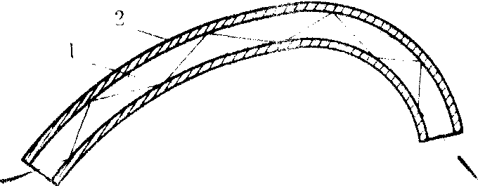 | 释义 | 光学纤维 光学纤维guangxue xianwei能传导光线的一种透明媒质纤维。又称光导纤维。简称光纤。美国的哈塞尔于1929年用石英最先制成了光学纤维,当时这种纤维质量虽然尚差,但在短距离内真正实现了光线和图像的传导。光学纤维传光,是利用全反射原理。光线从光学纤维的一端入射,经多次全反射后从另一端出射。光学纤维很细,其直径一般从几微米至几十微米,有的甚至小于1微米。这样细的纤维即使有些弯曲,一般也不会对光的传导有大的影响。光在光学纤维内传播的路径如下图所示。实用的光学纤维分内外两层,内层细丝为芯料1,折射率较高,约1.8;外面的包层为皮料2,折射率较低,约1.4。射入内层的光线入射到两层材料的分界面,若入射角大于临界角,则经多次全反射,光可从纤维的一端传播到另一端;而入射角小于临界角的那些光线不能产生全反射,光将因折入包层而逐渐损失,不能继续在纤维内传播。成千上万根光学纤维紧缚在一起构成光学纤维束。光学纤维束有的用于传送光能,称为传光束;有的还可用于传送图像,称为传像束。传像束要求每根光学纤维在两端的位置要有严格的对应关系。