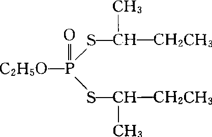释义 | 克线丹Sebufos rugby,taredan有机磷杀线虫剂。化学名称:S,S-二仲丁基-O-乙基二硫代磷酸酯。化学结构式如下。原药黄色透明液体.水中溶解度248 mg/L,能完全与丙酮、乙腈、二氯甲烷、乙酸乙酯、戊烷、甲醇、甲苯混合。广谱触杀型杀线虫剂。土壤处理,防治各种线虫和地下害虫,用于花生、大豆、烟草、马铃薯等作物。对人畜毒性大,小鼠急性口服LD5071.4 mg/kg。 |