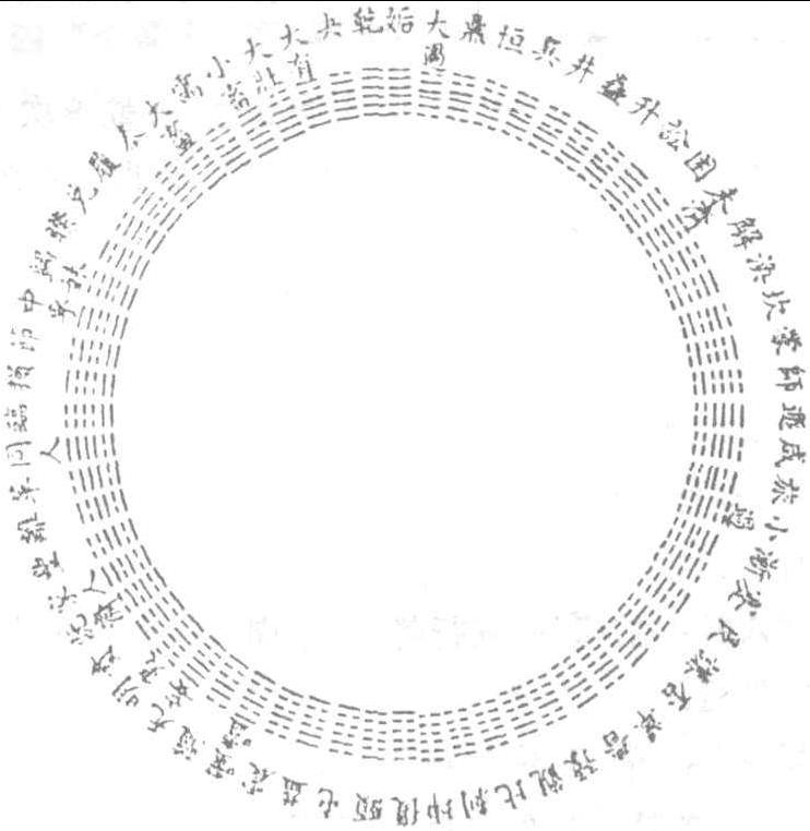释义 | 六十四卦 六十四卦《周易》 中的八卦,两两相重成为六十四卦。其卦名分别是: 乾、坤、屯、蒙、需、讼、师、比、小畜、履、泰、否、同人、大有、谦、豫、随、蛊、临、观、噬嗑、贲、剥、复、无妄、大畜、颐、大过、坎、离、咸、恒、遯、大壮、晋、明夷、家人、睽、蹇、解、损、益、、姤、萃、升、困、井、革、鼎、震、艮、渐、归妹、丰、旅、巽、兑、涣、节、中孚、小过、既济、未济。 ☚ 周回 八阵 ☛ 六十四卦《周易》中由八卦演化而成的卦名。任取其中八卦中的两卦相重则为六十四卦。其名为: 乾、坤、屯、蒙、需、讼、师、比、小畜、履、泰、否、同人、大有、谦、豫、随、蛊,临、观、噬嗑、贲、剥、复、无妄、大畜、颐、大过、坎、离、咸、恒、遁、大壮、晋、明夷、家人、睽、蹇、解、损、益、夬、姤、萃、升、困、井、革、鼎、震、艮、渐、归妹、丰、旅、巽、兑、涣、节、中孚、小过、既济、未济。六十四卦每卦各有卦辞。 古代名物 > 占相類 > 易占部 > 卦爻 > 六十四卦 六十四卦 liùshísìguà 指《周易》中的六十四種卦畫符號。爲八經卦兩兩相重組合而成的六畫卦,在通行本《周易》中,其名稱依次爲:乾、坤、屯、蒙、需、訟、師、比、小畜、履、泰、否、同人、大有、謙、豫、隨、蠱、臨、觀、噬嗑、賁、剥、復、无妄、大畜、頤、大過、坎、離、咸、恒、遯、大壯、晉、明夷、家人、睽、蹇、解、損、益、夬、姤、萃、升、困、井、革、鼎、震、艮、漸、歸妹、豐、旅、巽、兑、涣、節、中孚、小過、既濟、未濟。宋·朱熹《周易本義·圖》畫有先天六十四卦圓圖,傳爲宋道士陳摶所製。并加說明:“此圖圓布者,乾盡午中,坤盡子中,離盡卯中,坎盡酉中。陽生於子中,極於午中;陰生於午中,極於子中。其陽在南,其陰在北。方布者,乾始於西北,坤盡於東南,其陽在北,其陰在南。此二者陰陽對待之數。圓于外者爲陽,方于中者爲陰。圓者動而爲天,方者静而爲地者也。” 先天六十四卦圓圖 六十四卦the Sixty-Four Diagrams |