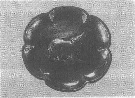 释义 | 六曲熊纹银盘 六曲熊纹银盘唐。高1厘米,口径13.4厘米。1970年陕西省西安市南郊何家村窖藏出土。陕西省博物馆藏。此盘边缘呈六花瓣形,盘中有一立熊,熊作张口待食或嚎叫状。熊本为笨拙而凶猛的动物,但经古代匠师的精心设计,却显得温驯可爱而颇具装饰意趣。 ☚ 桃形龟纹银盘 刻花鎏金孔雀翼鹿纹银盒 ☛ |