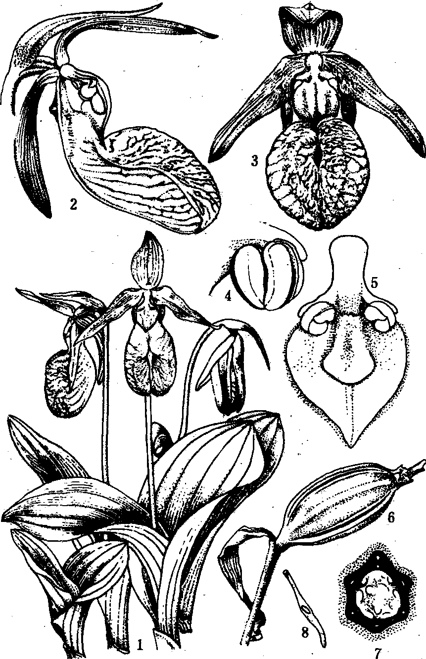 许多种为著名的观赏植物,如扇脉杓兰(Cypri-pedium japonicum)、建兰(Cymbidium ensifolium)和春兰(Cymbidium goeringii)等。药用如石斛(Den-drobium nobile)、白芨(Bletilla striata)和天麻(Gas-trodia elata)等。 兰科orchid family;Orchidaceae单子叶植物。陆生、附生多年生草本,稀为攀援藤本。陆生的常具根状茎或块茎;附生的茎基部常增粗或形成假鳞茎,有气根。单叶,常略肉质,2列互生,稀对生或轮生,基部常有叶鞘,有时退化为鳞片。花两性,稀单性同株或异株,单生,或为总状、穗状、圆锥状花序;萼片3枚,花瓣状,中央1枚与花瓣靠合成盔状,侧部2枚有时贴生蕊柱基部形成萼囊;花瓣3枚,中央1枚特化为唇瓣,有时中部缢缩为上、下唇,基部具含蜜腺的囊或距;雌雄蕊合生成蕊柱,雄蕊1或2枚,具单雄蕊的,3个柱头中有2个发育,常多少黏合,另一个变为小凸体——蕊喙,具2雄蕊的,3个柱头合生,无蕊喙;花粉常结成2~8个花粉块,有或无花粉块柄、蕊喙柄和黏盘;子房下位,3心皮,1室,常180度扭转弯曲,因而唇瓣位于下方。蒴果纺锤形,种子微小,数量极多,无胚乳。x=6~29。本科700属,20 000种,广布热带、亚热带和温带,以南美和亚洲热带最多。中国约150属,1 000余种,主要分布长江流域和以南各省区,台湾和西南部最丰富。许多种为著名的观赏植物,如扇脉杓兰(Cypripedium japonicum Thunb.)、建兰(Cymbidium ensi-folium L.);药用如石斛(Dendrobium nobile Lindl.)、白芨和天麻等。 |