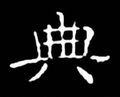 ❹不刊之典|朝章国典|三坟五典|引经据典|援经据典 典典,金文作     ,《説文》古文作 ,小篆作 。 卜辭“典”“册”形義俱近,可以通用,故《新甲骨文編 (增訂本)》收入 “册”字下,可從。今從詞的角度考慮而單獨列出,甲骨文字形見 “册”字條。金文字形或增 “廾”,或增二短横,其初或無實義,後類化爲表承物的 “丌”,即基座之 “基” 的初文。“典” 的本義是典籍,引申爲法則、制度、故事、禮儀、主持、典雅、抵押等義。銘文或用與 “册” 同,如表示記載、登録、册賜或契約等義,或表法典、法度義。 楚簡帛文作 ,承金文或體而有訛變。秦簡牘文作 ,古隸典型。參見027.册字條。 典diǎn (甲) (篆) 会意字,甲骨文上为“册”,下为“大”(或作“廾”,双手托起的意思),意思是重要的书籍。作声符生成的字有: diǎn 碘(碘酒) tiǎn 腆(丰盛) 淟(污浊,肮脏) 觍(䩄觍)