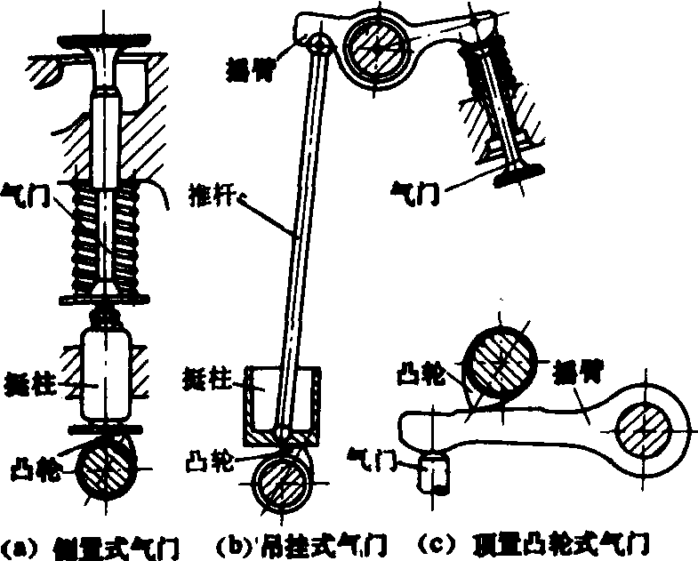释义 | 内燃机进排气系统intake and exhaust system of internal combustion engine定时地向气缸内充入新鲜空气或混合气并排出废气的系统。包括空气滤清器和进气管、配气机构、排气管和消声器三部分。 图1 空气滤清器 配气机构 进排气系统的主要部分,为气缸中燃料的完全燃烧创造条件。常见的配气机构有气门式和气孔式两种。四冲程内燃机均用气门式,它由凸轮轴通过传动机构来控制进、排气门的开闭。二冲程内燃机常用气孔式,在气缸套上设有进、排气口,通过活塞位移打开或遮住这些气口来实现换气。有的二冲程内燃机带有扫气泵以提高进气压力,帮助扫净燃烧废气,增加进气量。 配气机构类型如图2。柴油机常用吊挂式气门的配气机构,它一般由凸轮轴、挺柱、推杆、摇臂、摇臂座、气门和弹簧等组成。汽油机也有用侧置式气门的。顶置凸轮式气门一般用于大型高速柴油机。气门开闭完全受凸轮控制,凸轮型面设计要考虑适宜的配气相位、足够的气门开启时间截面、一定的气门落座速度、允许的正负加速度大小以及曲线的光滑性等。气门弹簧用来使气门在关闭时与气门座紧贴密闭,并保证气门开闭按凸轮型面曲线工作。为避免弹簧共振,变螺距弹簧的应用日渐增多。气门座一般为合金铸铁做的镶圈。排气门材料为耐热合金钢,进气门材料为普通合金钢。由于配气机构与气缸体在热膨胀上的差异,在气门顶端留有0.2~0.3毫米的气门间隙。进气门一般在上止点前2°~16°(曲轴转角)开,在下止点后25°~45°关;排气门在下止点前25°~45°开,上止点后2°~16°关。为了确保配气相位,驱动凸轮轴的齿轮应与曲轴齿轮定位啮合。若采用链传动或齿形带传动,也必须准确定时。 图2 配气机构 排气管 燃烧后的废气经排气管排放到大气中。由于温度高,排气管均采用铸铁件,并要求内壁光滑、流线好以减少阻力。高速内燃机为了更好地利用排气波脉动作用,对各歧管长度有一定要求。增压内燃机的排气管连至废气涡轮增压器(见内燃机涡轮增压器)。有的汽油机的排气管靠近进气管,甚至将部分进、排气管铸成联体,以便利用排气的热来弥补汽油汽化热量的消耗。为了减少排气噪声,排气管的尾端常装有消声器。 |