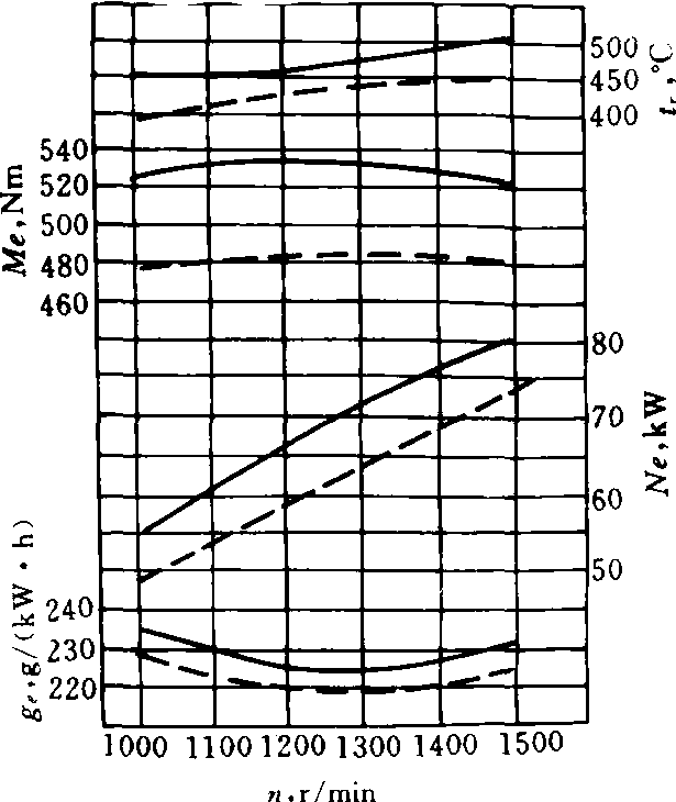 释义 | 内燃机速度特性speed characteristics of internal combustion engine内燃机供油量保持一定值不变,性能参数随转速变化的关系。测定速度特性时,对柴油机使油泵齿条固定在一定位置上,对汽油机将节气门开度放在一定位置上,改变外界负荷得到不同的转速。以转速为横坐标,其他参数 (Ne,Me,ge)为纵坐标绘制出速度特性曲线。当柴油机油泵齿条固定在标定功率位置时,测得的速度特性为全负荷速度特性(又称外特性)。根据国家标准,标定功率有4种,通用柴油机的全负荷特性也有4种,专用柴油机只需测定铭牌上所标明的2种功率的速度特性。油泵齿条放在标定功率以下位置时测得的速度特性,称为部分负荷速度特性(简称部分特性)。从柴油机的全负荷速度特性(外特性)曲线上,可以看出最大功率Ne最大、最大扭矩Me最大及最低耗油率ge最小相应的转速以及这些指标随转速而变化的情况。从图上它清楚地表明了柴油机的动力性能:Me随n变化的曲线很平坦,这对用于拖拉机和工程机械的内燃机是不利的,因为当工作时遇到短期过载、转速下降时,输出扭矩却增大很少,内燃机容易熄火;扭矩储备系数低,使柴油机适应性低,为此,在油泵中调速器采用弹簧校正器。从图上还看出功率Ne随转速成正比例增加,如齿条位置不变,而内燃机又突然卸去负荷,则柴油机将发生飞车事故;不像汽油机,可燃混合气量随转速上升而很快下降,不至引起飞车。 内燃机速度特性曲线 |