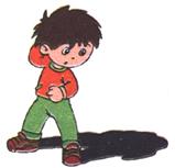 The boy casts shadows on the sidewalk.那个小男孩在人行道上投下影子。