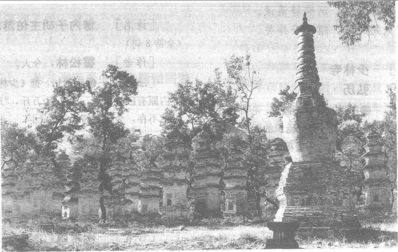 少室塔林冠九州,唐宋元明历代修。 纵横叠峦难数尽,建筑工艺超群优。